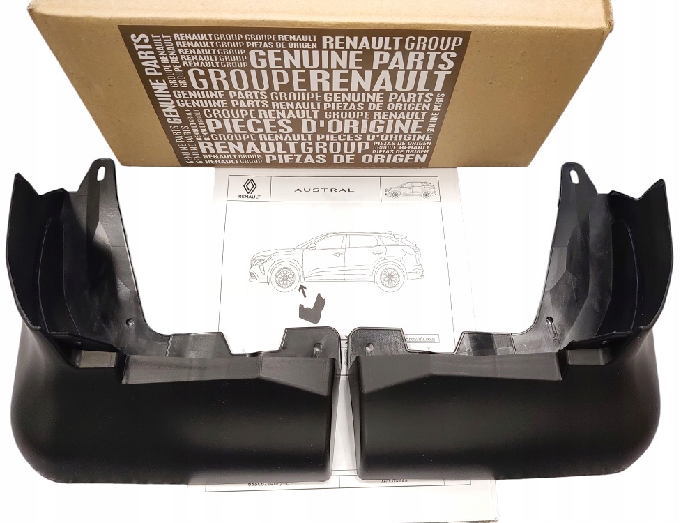 Oryginalne chlapacze przednie dedykowane do modeli Renault Austral i Espace VI zapewniają niezawodną ochronę nadwozia przed błotem, kamieniami, wodą oraz innymi zanieczyszczeniami. Wykonane z wysokiej jakości materiałów, są trwałe, odporne na warunki atmosferyczne oraz idealnie dopasowane do kształtu nadkoli tych modeli.