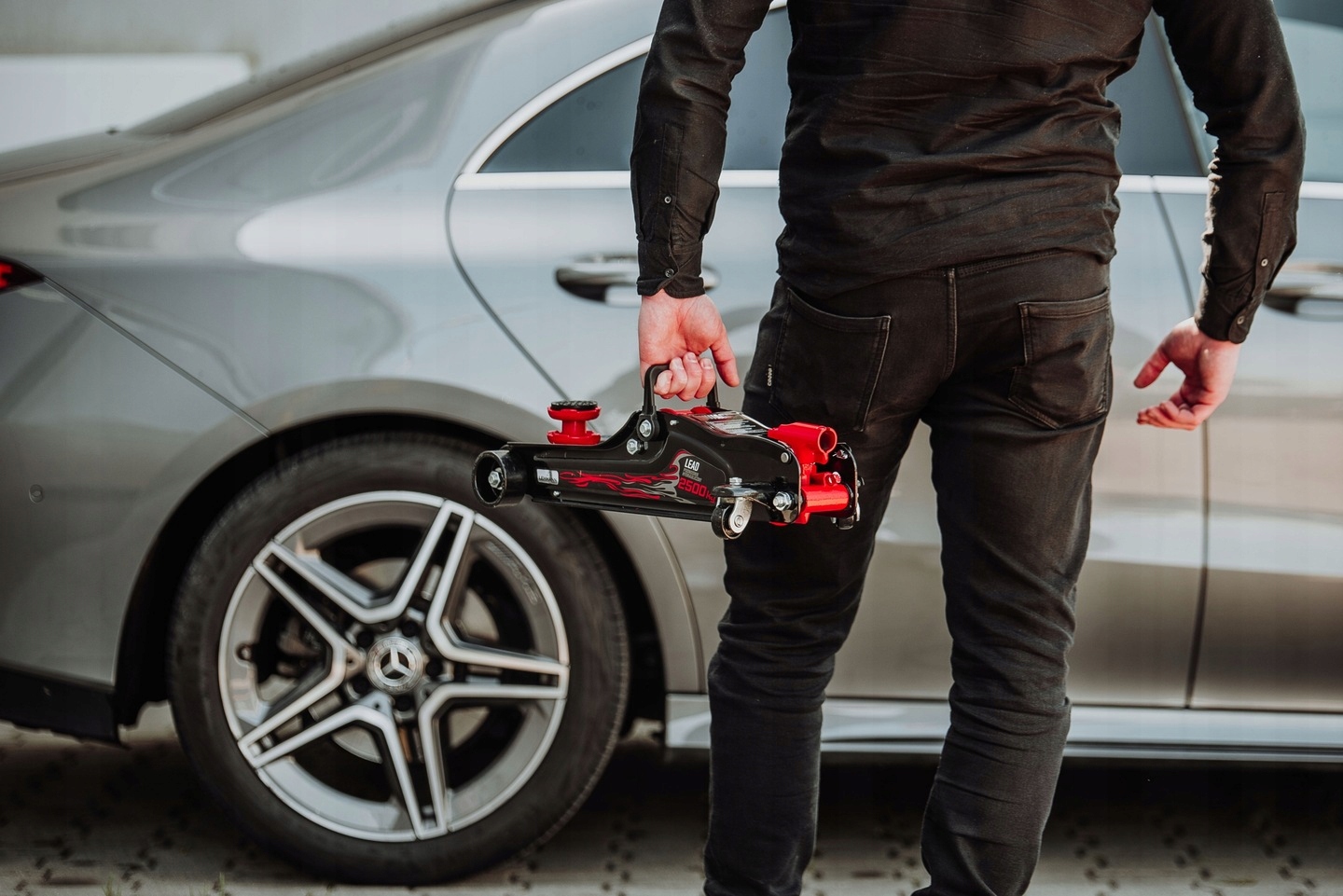 Złożony podnośnik zajmuje niedużo miejsca i bez problemu zmieści się w Twoim bagażniku lub garażu. Kiedy przyjdzie do wymiany kół w łatwy sposób przeprowadzisz z nim cały proces.