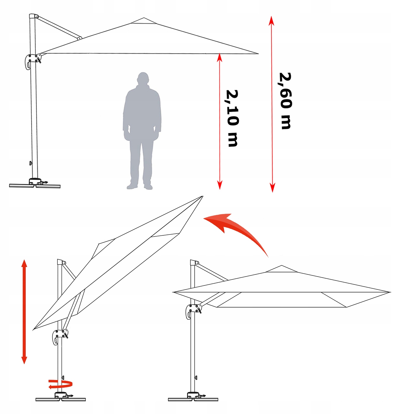 Parasol należy obciążyć lub przykręcić do podłoża, w przeciwnym razie istnieje ryzyko uszkodzenia parasola przez działanie wiatru.