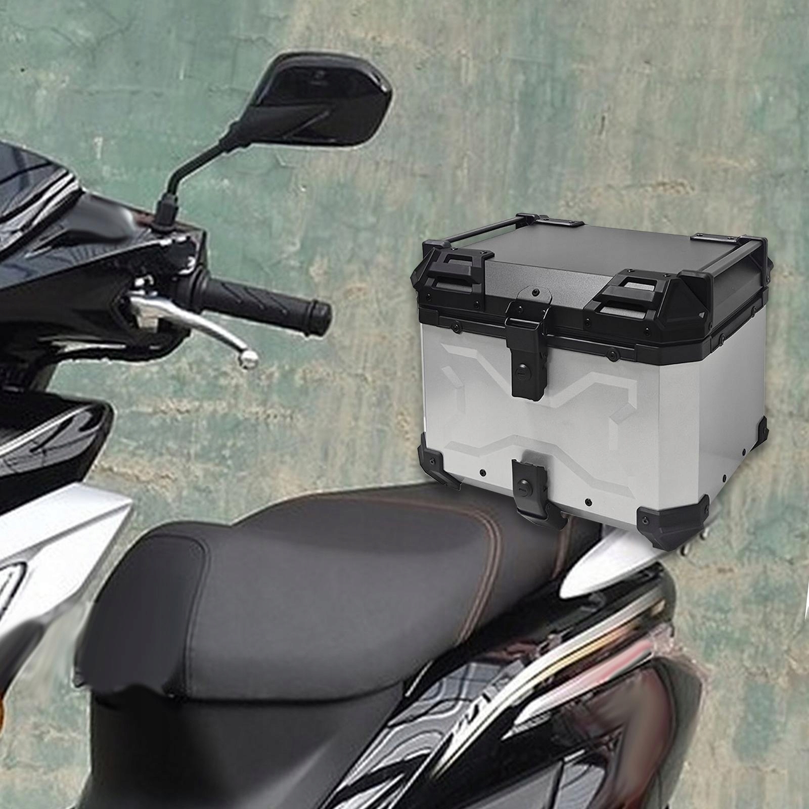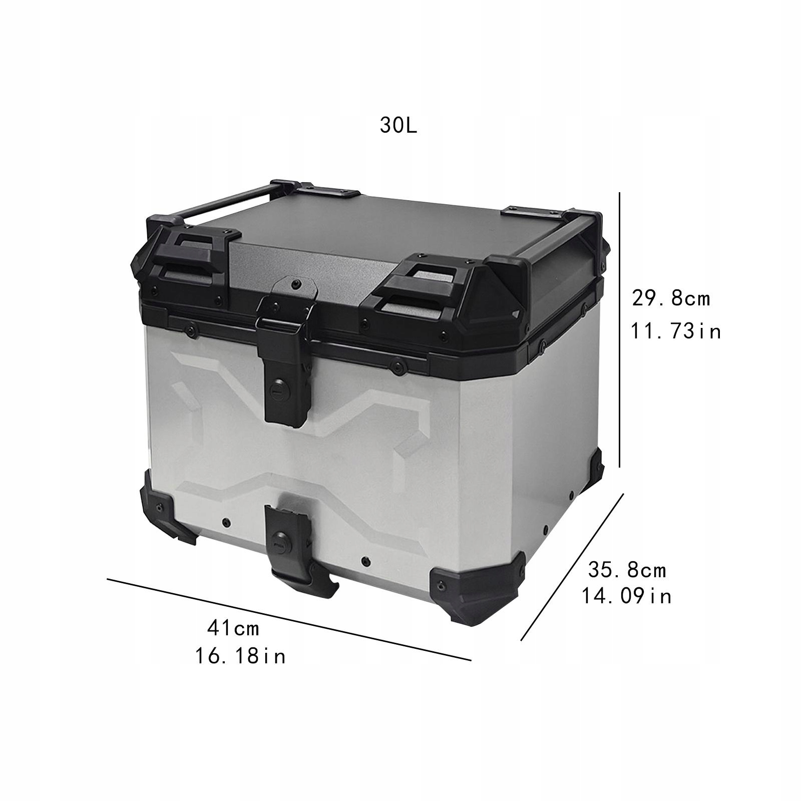 Uniwersalny 30L motocyklowy kufer górny odporny na zużycie wielofunkcyjny bagażnik transportowy tłoczony na srebrno i z czarnym zamkiem