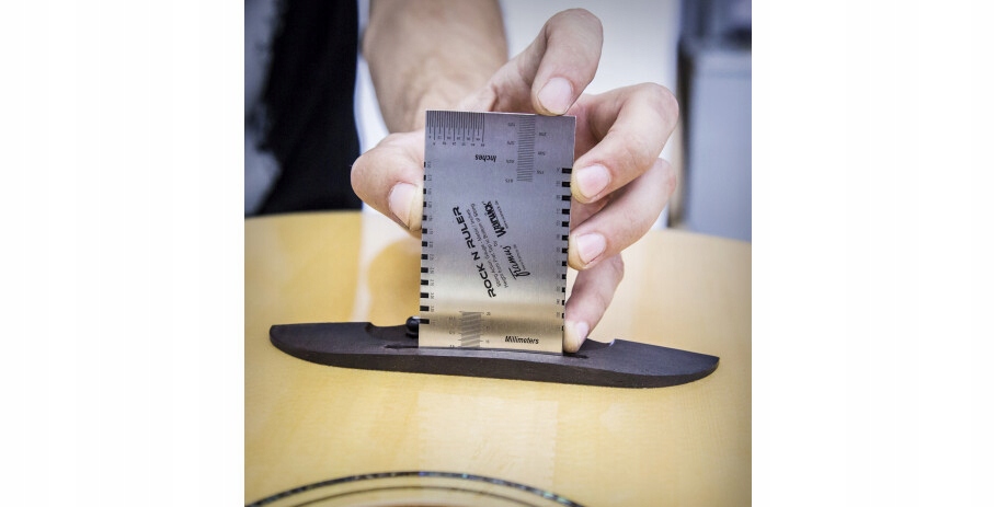 Miarka RockCare Rock n’ Ruler jest wszechstronnym narzędziem do ustawiania gitary i basy. Dzięki Rock n' Ruler można łatwo zmierzyć i ustawić akcję oraz rozstaw strun, czy skorygować ułożenie gryfu, wszystko za pomocą tego prostego przyrządu pomiarowego. Jednostki wagi podane są tu w systemie metrycznym i imperialnym, więc nie ma potrzeby przeliczania. Tylna strona zawiera przydatne wskazówki konfiguracji jako punkt wyjścia do odpowiedniego ustawienia gitary elektrycznej, gitary akustycznej lub basowej. Dzięki wygodnemu formatowi wizytówki, Rock n' Ruler z łatwością zmieści się w portfelu i będzie zawsze z Tobą, gdy tego potrzebujesz.
