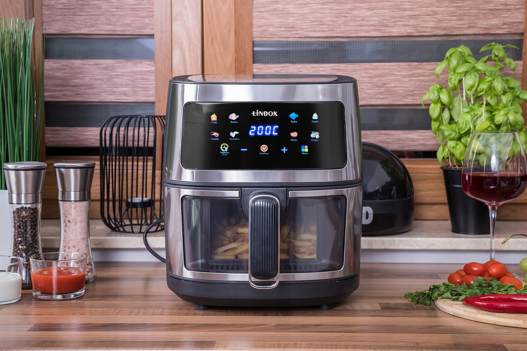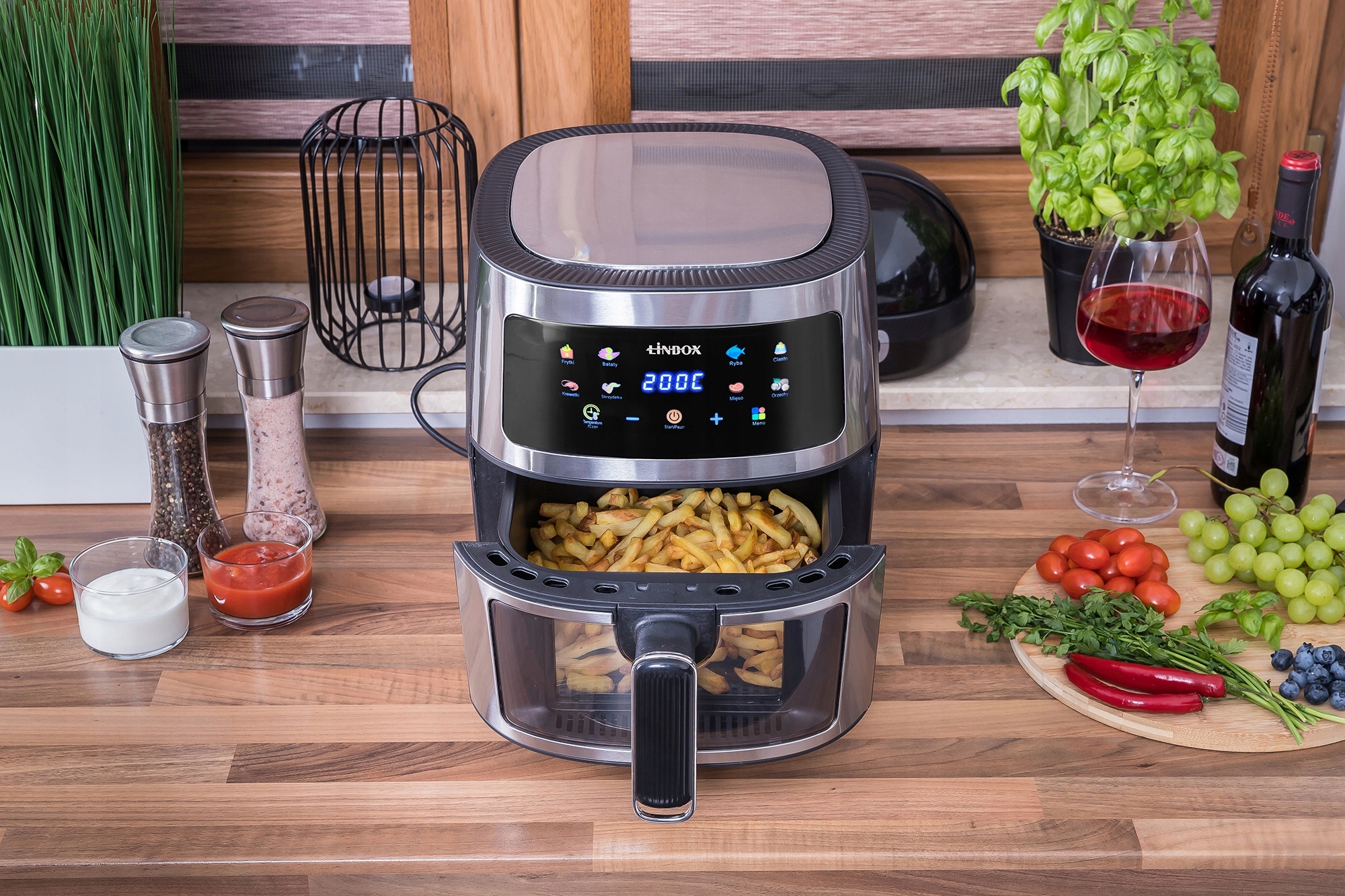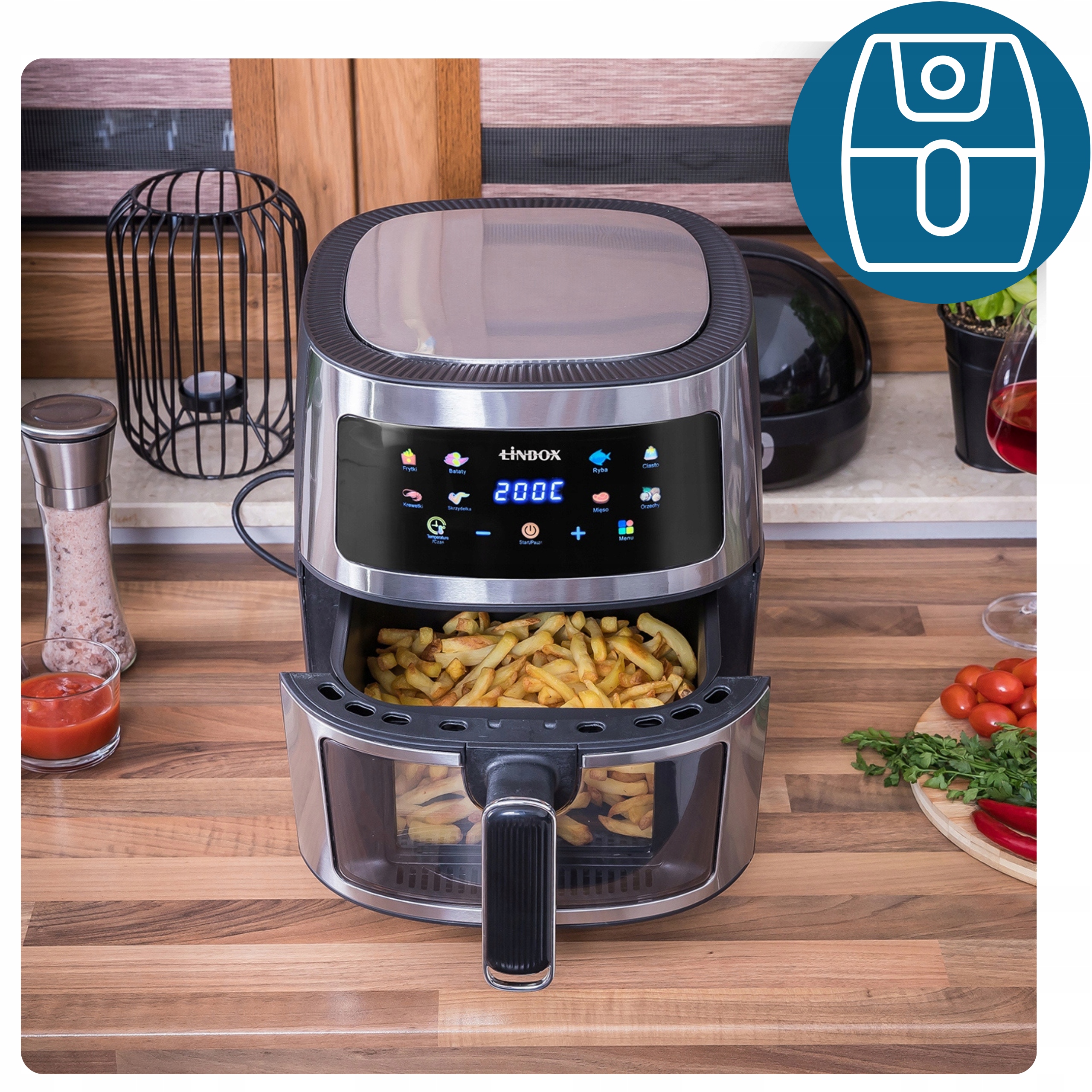 Ciesz się chrupiącymi frytkami, soczystym kurczakiem i innymi pysznościami bez wyrzutów sumienia! Ta frytkownica wykorzystuje gorące powietrze do smażenia, eliminując potrzebę użycia tłuszczu.