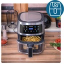 Frytkownica wykorzystuje technologię konwekcyjną, która zapewnia równomierną cyrkulację gorącego powietrza.