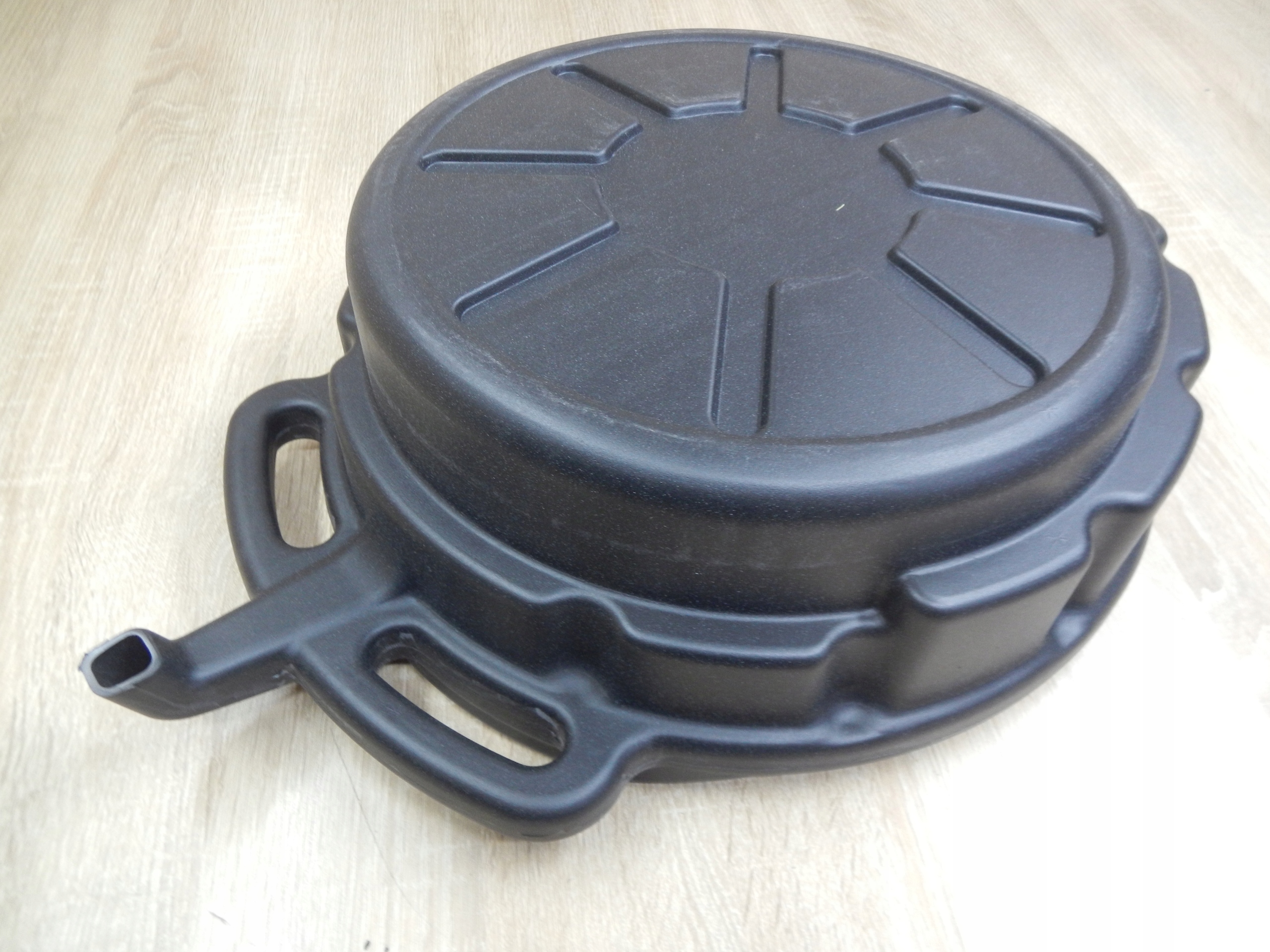 Kształt miski zapobiega rozlewaniu się oleju. Posiada lejek do opróżniania.