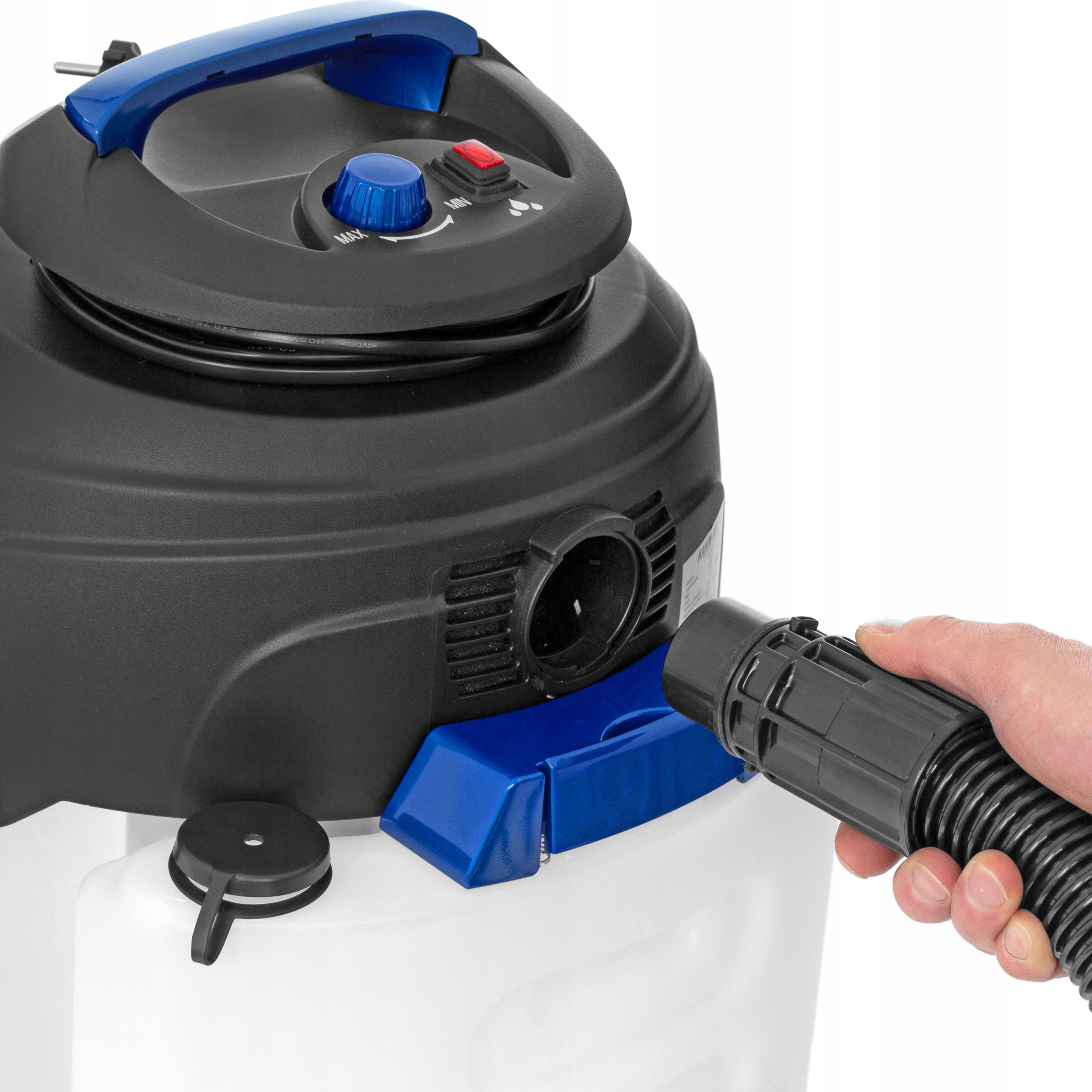 Automatycznie blokuje przepływ wody, gdy zbiornik osiąga maksymalny poziom. Gwarantuje bezpieczeństwo odkurzacza i długowieczność jego działania, a odkurzacz jest odpowiednio zabezpieczony.