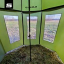 Wyposażony jest w drzwi wejściowe z zamkiem błyskawicznym oraz trzy okna o wymiarach 40 x 90 cm.