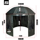 Wszechstronność użytkowania: dzięki odpinanej osłonie bocznej parasol sprawdzi się zarówno jako namiot, osłona przed deszczem, jak i klasyczna osłona przed słońcem, idealna na gorące dni nad wodą.