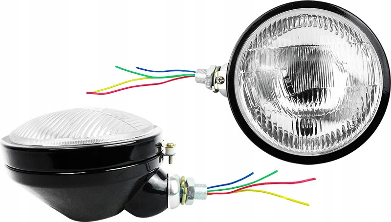 Komplet reflektorów metalowych z żarówkami H4 oraz kostkami Ursus