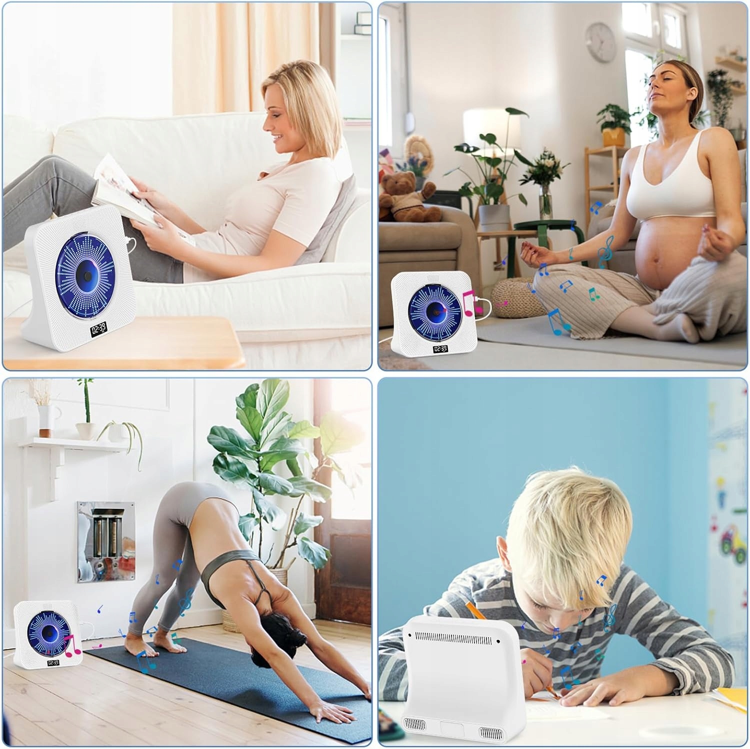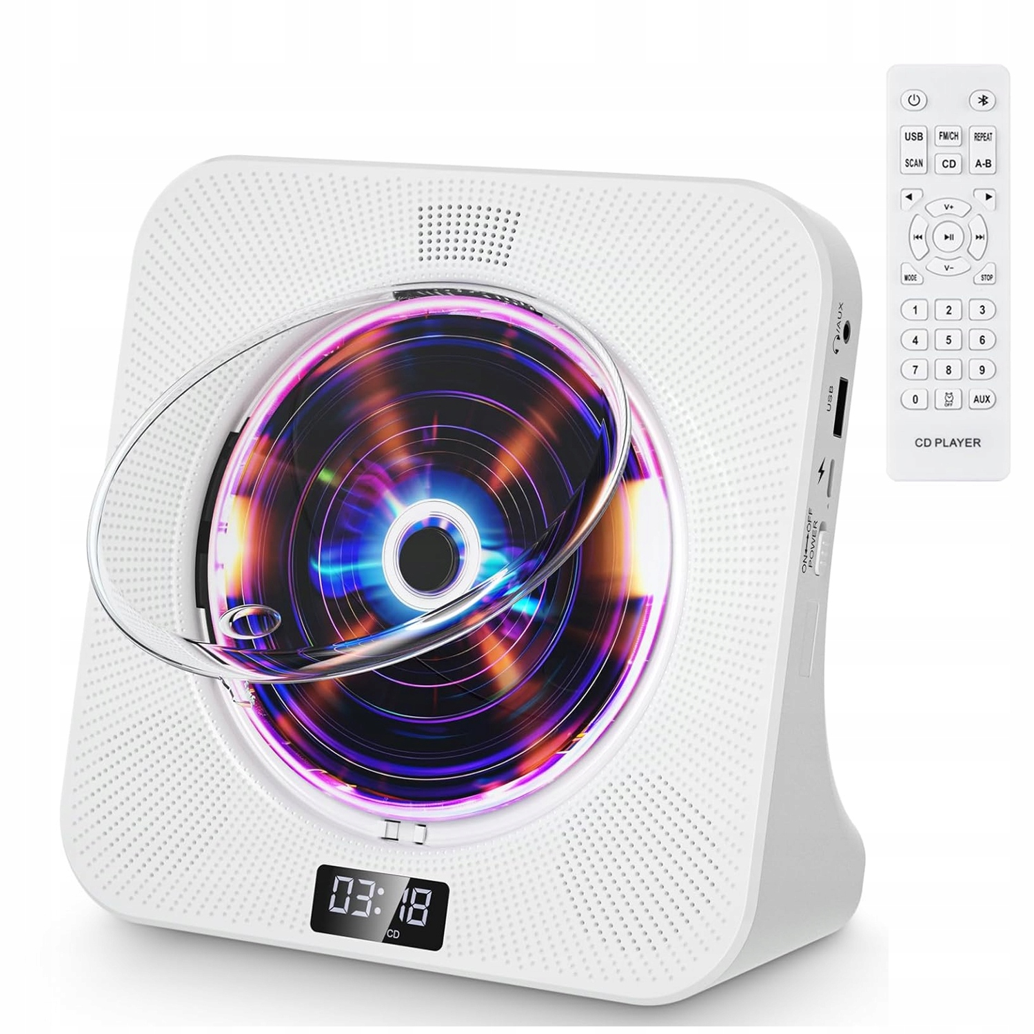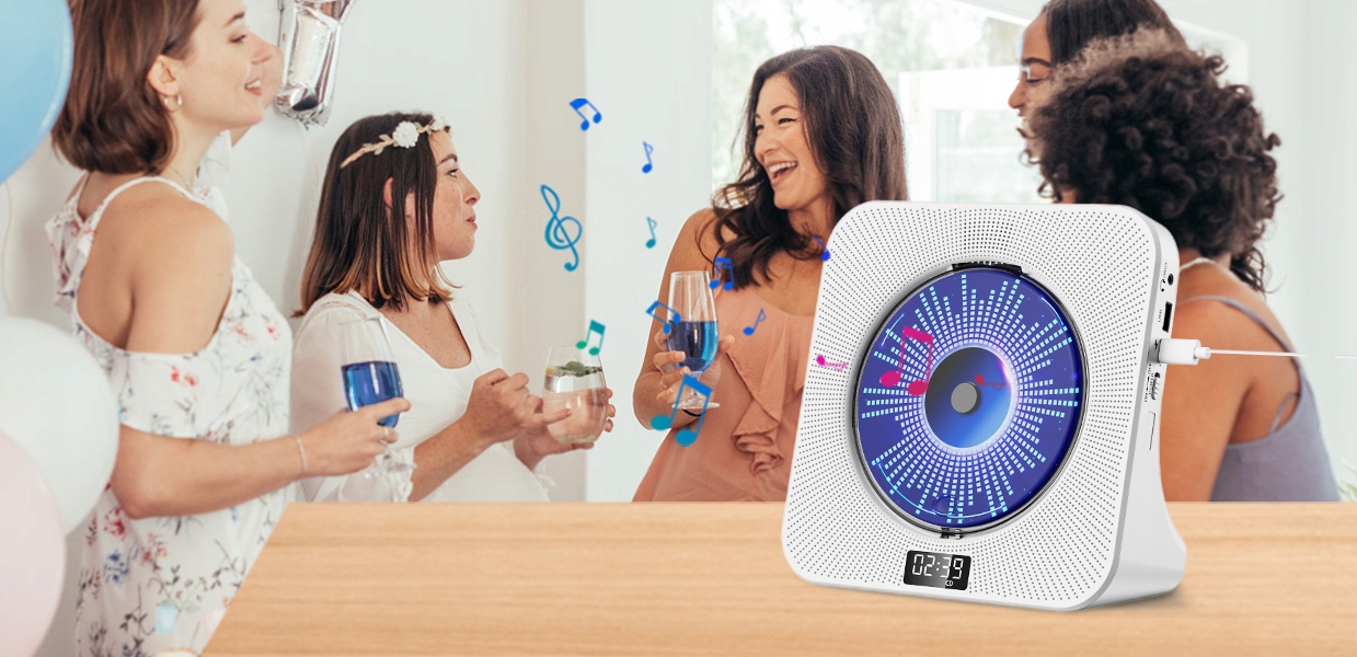 🌷 Odtwarzacz CD dla dzieci: Odtwarzacz CD Desktop jest wyposażony w wyświetlacz z przodu, aby ułatwić korzystanie z niego. Ten wielofunkcyjny odtwarzacz muzyczny ma 5 trybów: tryb CD, tryb Bluetooth, tryb FM, tryb USB i tryb AUX. Różne tryby są wyposażone w różne oświetlenie, aby stworzyć romantyczną atmosferę muzyczną w Twoim domu. W zestawie z osłoną przeciwpyłową, pilotem i adapterem, odtwarzacz musi być obsługiwany za pomocą kabla zasilającego.