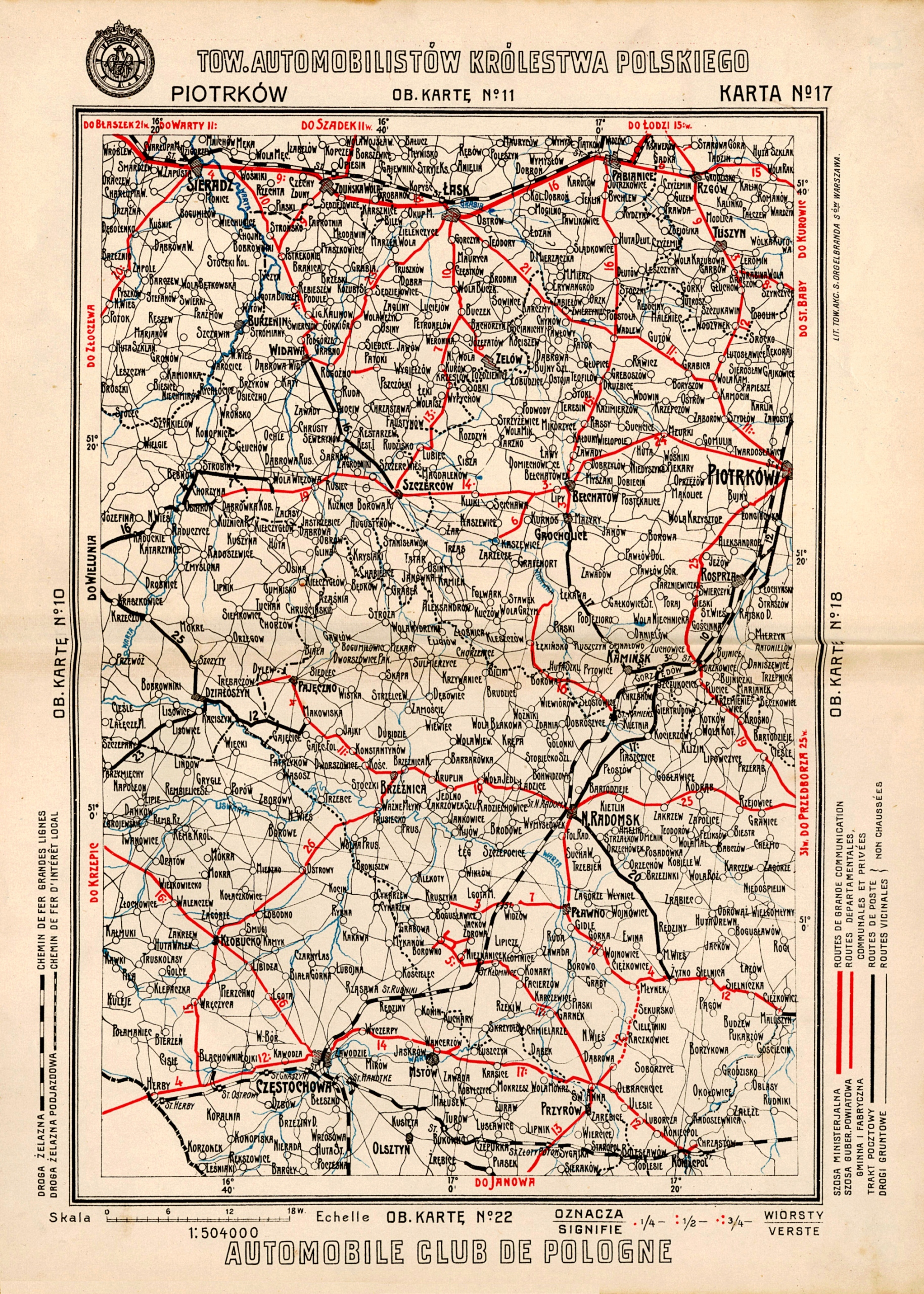 Stara MAPA Polski Samochodowa PIOTRKÓW TRYBUNALSKI 1913r. 70x50cm