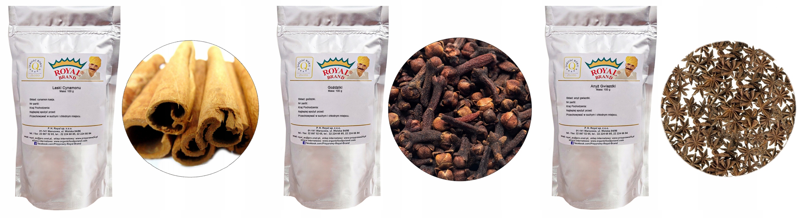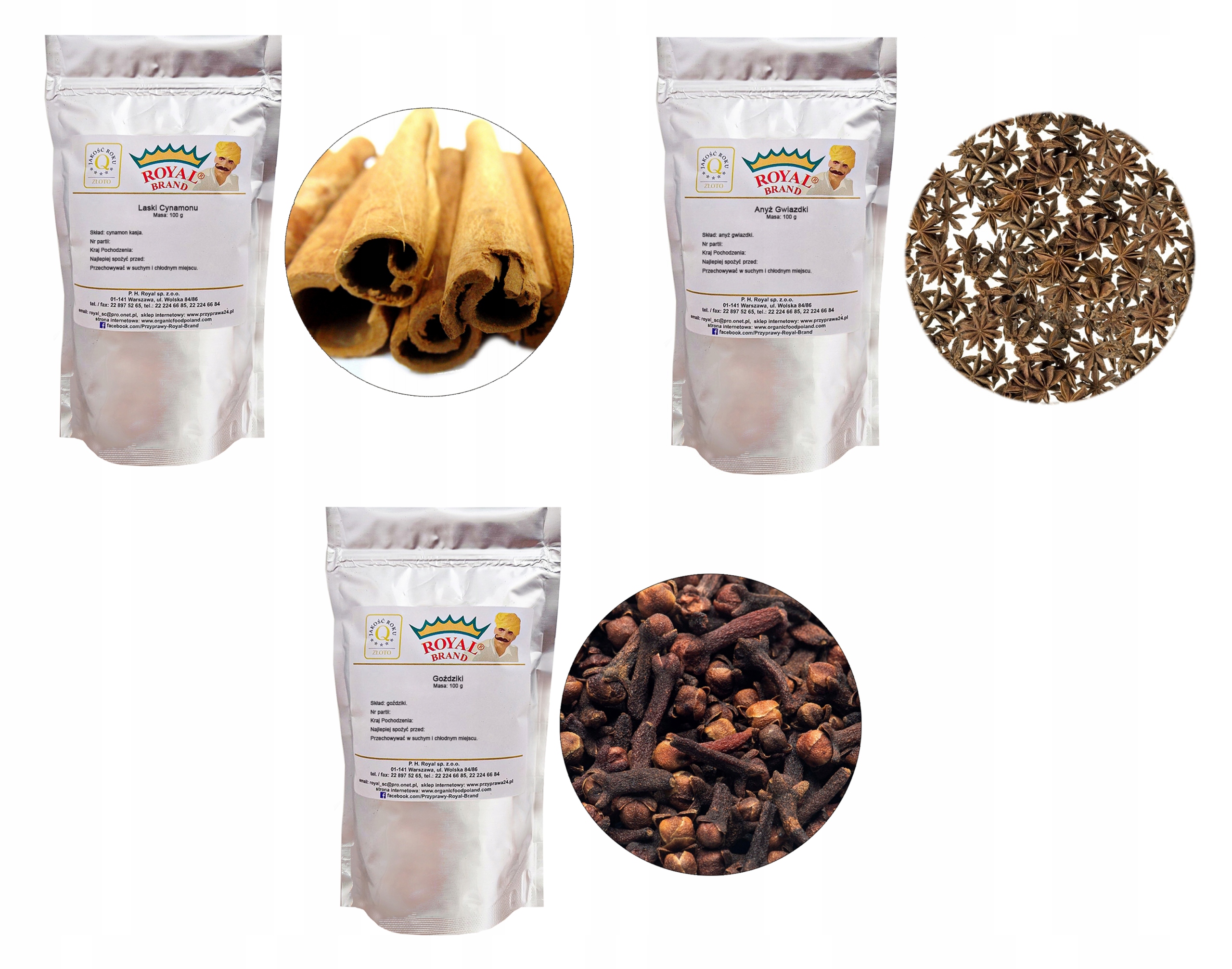 Торговое название Zestaw: Anyż gwiaździsty 100g, Cynamon laski 100g, Goździki całe 100g