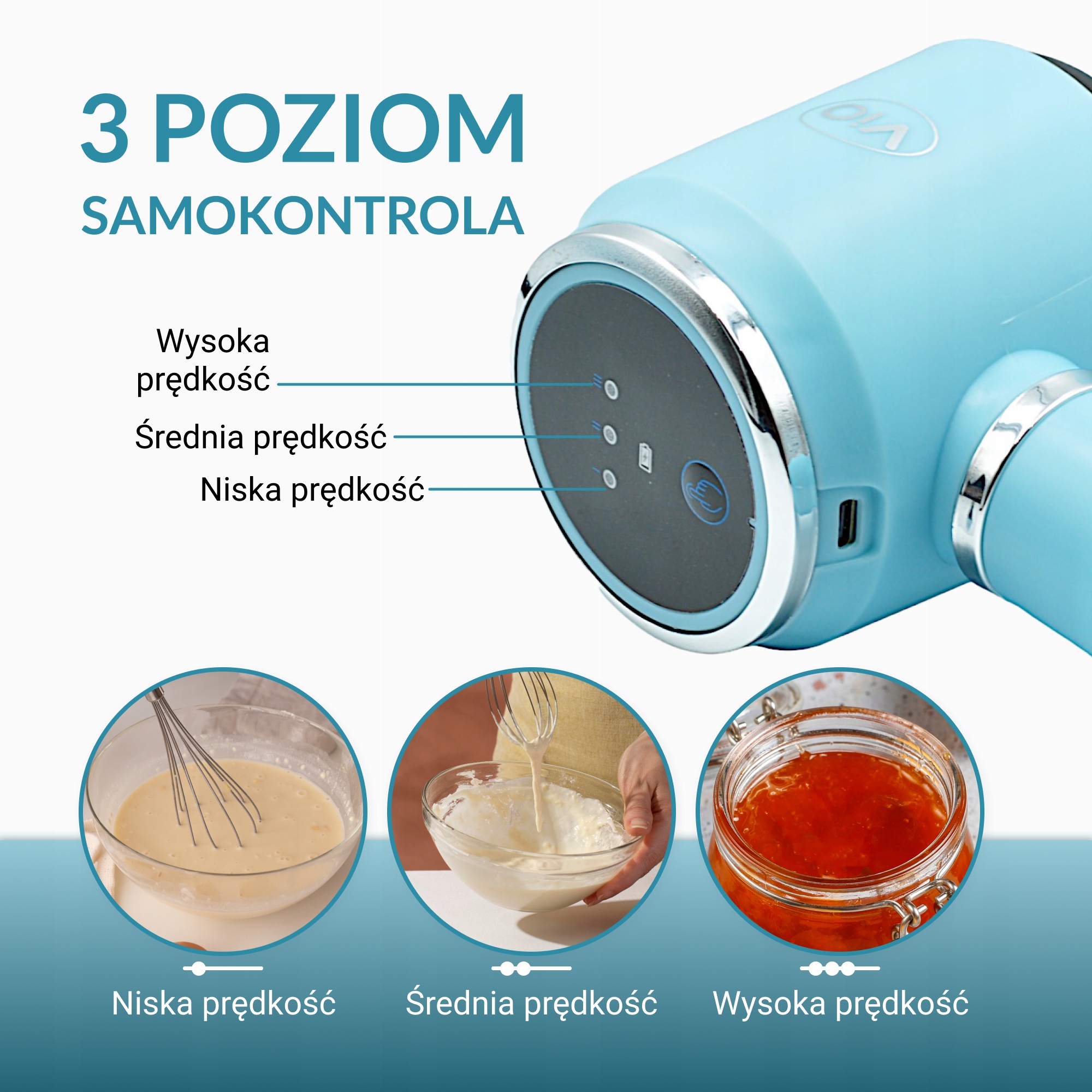 ViO K04 ma trzy poziomy prędkości, które pozwalają idealnie wymieszać różne składniki. Możesz łatwo wybrać najlepszy tryb do ubijania jajek, śmietany, sosów, ciasta naleśnikowego lub puree.