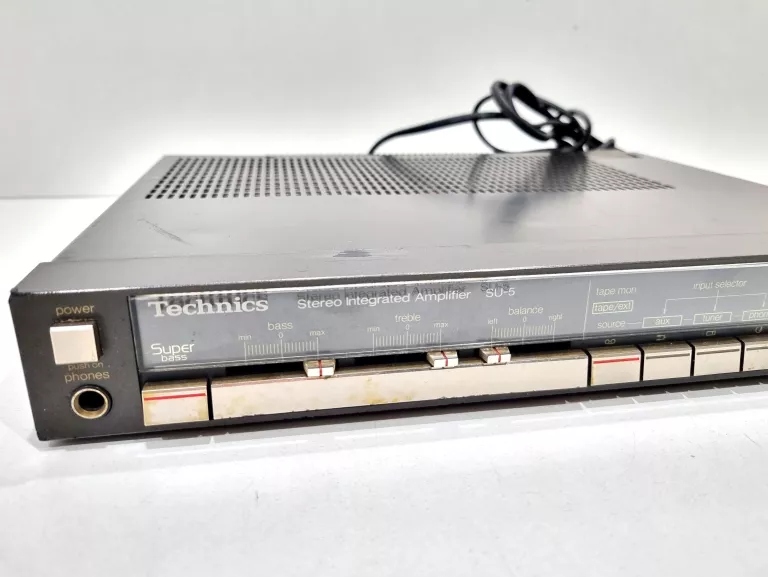 Wzmacniacz sprawny w dobrym stanie, posiada ślady użytkowania w postaci rys, zadrapań oraz otarć.