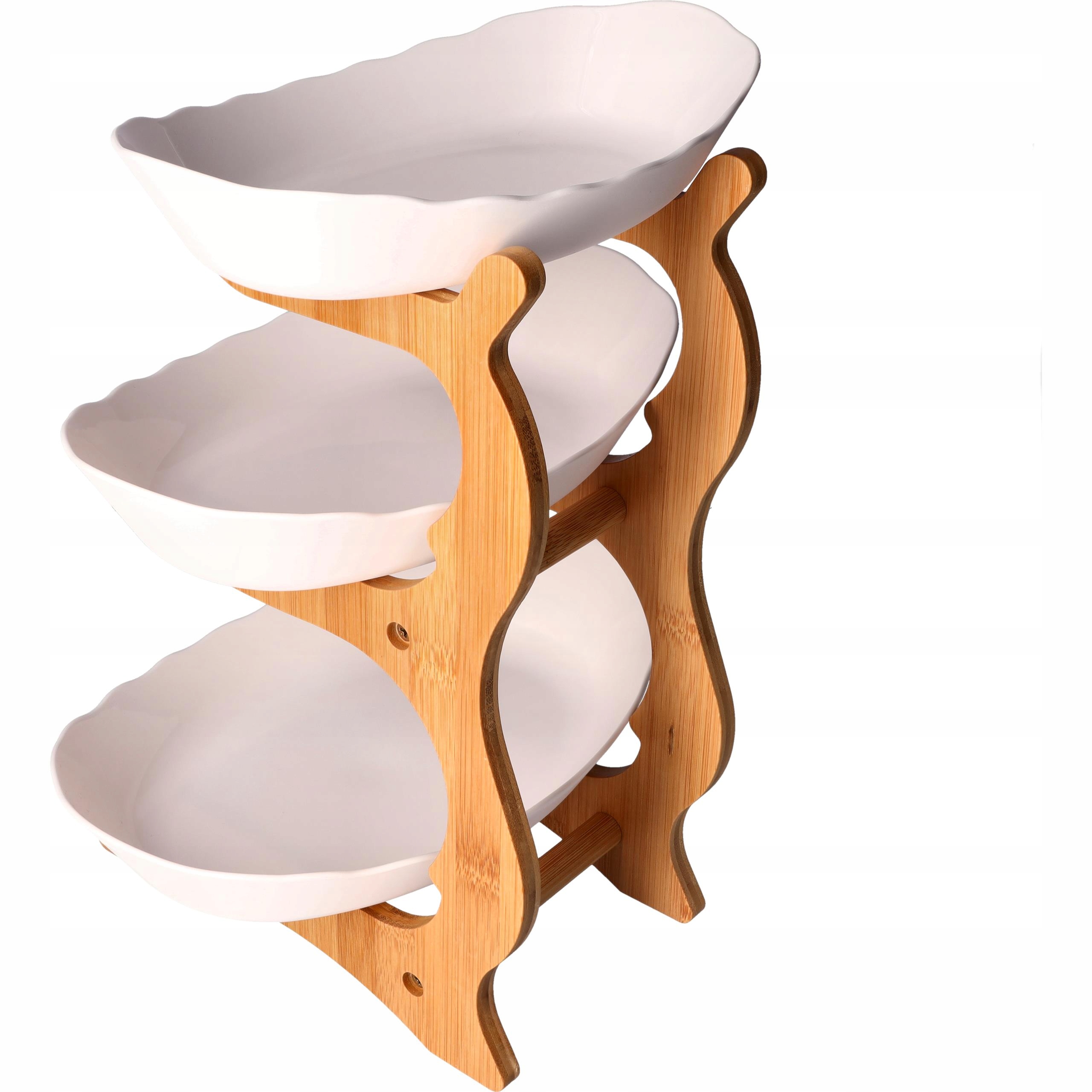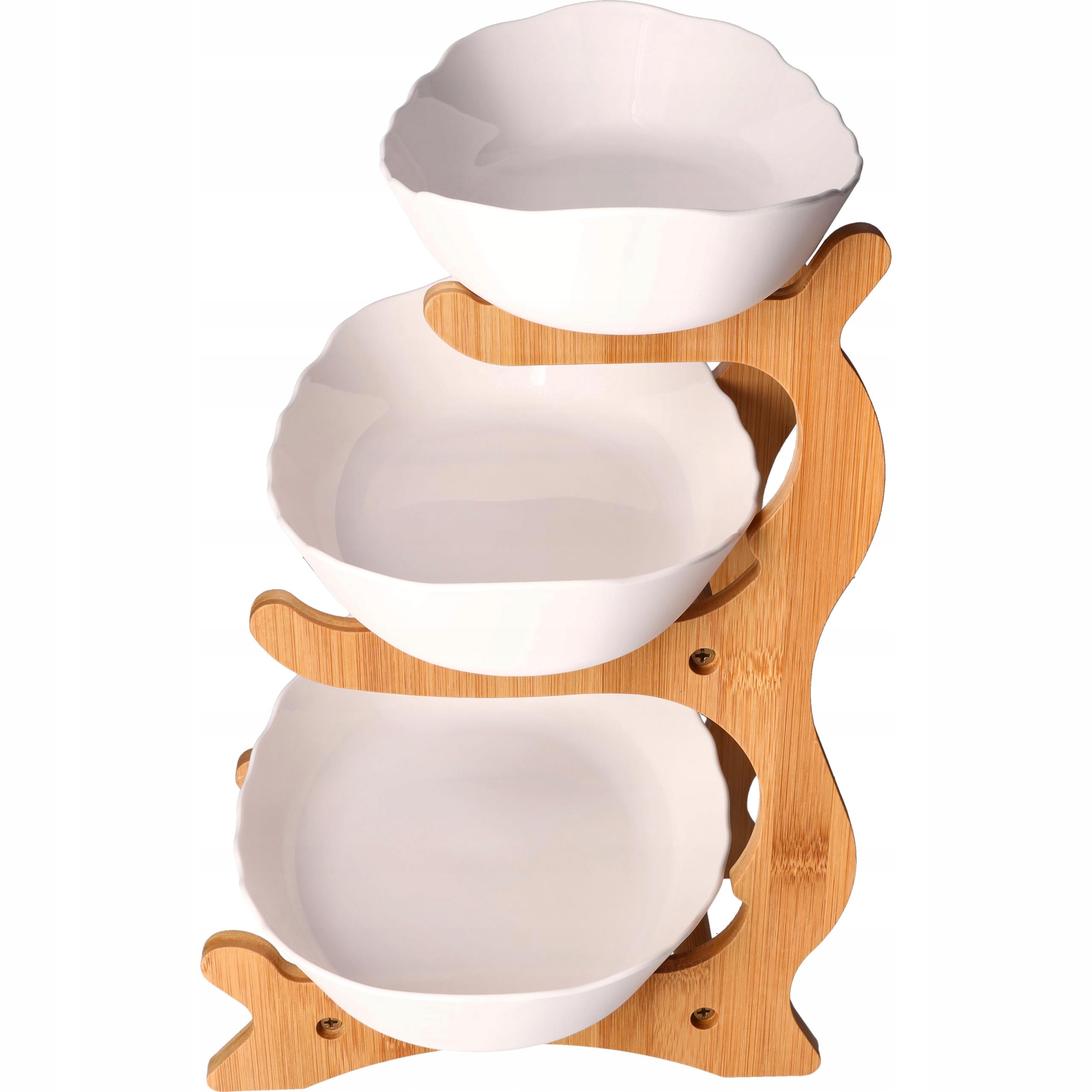 Stojak o grubości 12 cm gwarantuje stabilność i estetykę. Solidna bambusowa konstrukcja i praktyczne miski zapewniają trwałość i łatwość czyszczenia. Nasza patera nie tylko wygląda elegancko, ale jest również wyjątkowo stabilna i praktyczna.