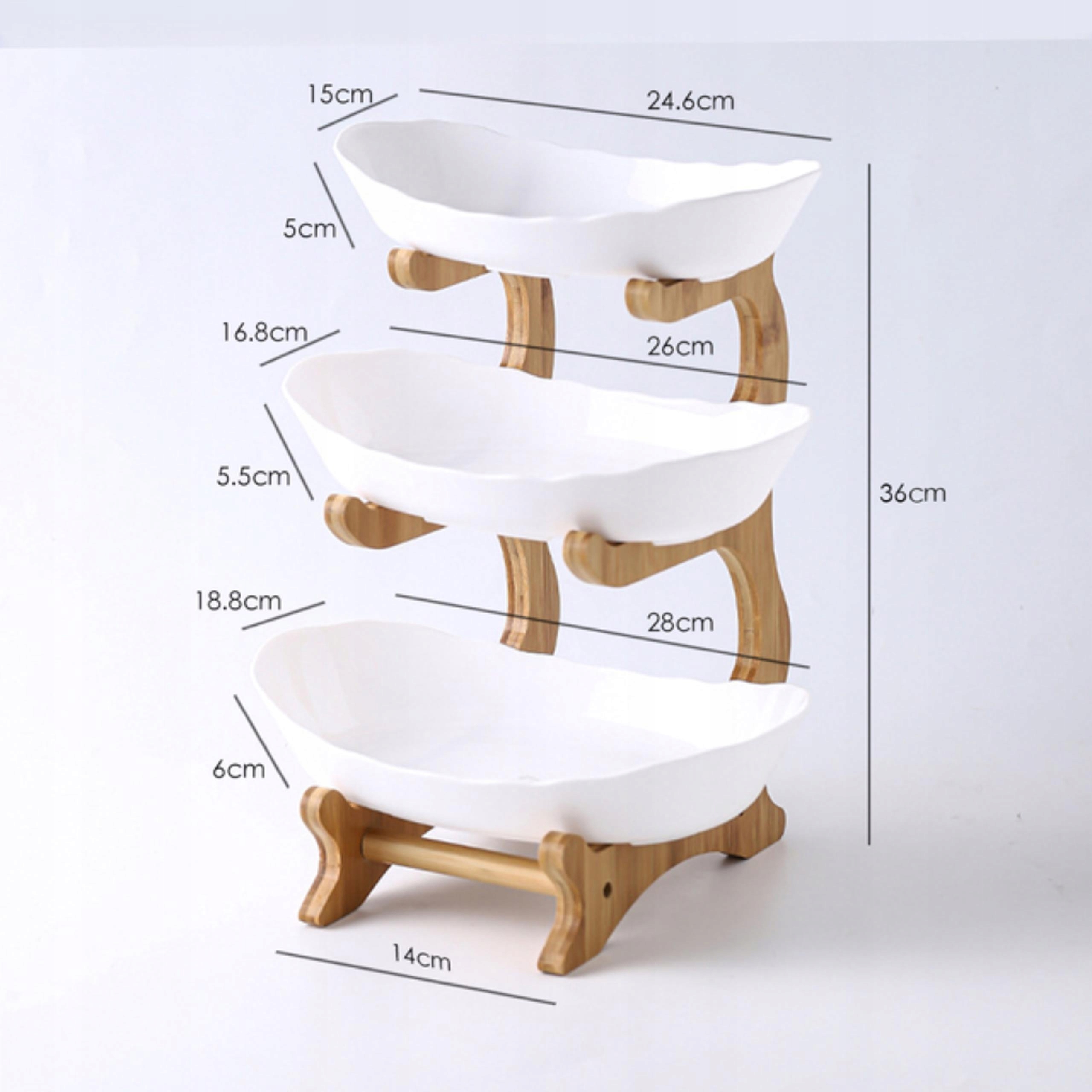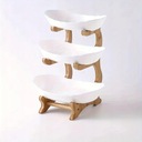 Piętrowa patera wykonana z drewna bambusowego i eleganckich misek w odcieniach morskiej zieleni dodaje elegancji i stylu do każdej aranżacji stołu. Bambusowa konstrukcja wprowadza naturalny, ciepły akcent do wnętrza, podczas gdy eleganckie miski dodają świeżości i nowoczesności.