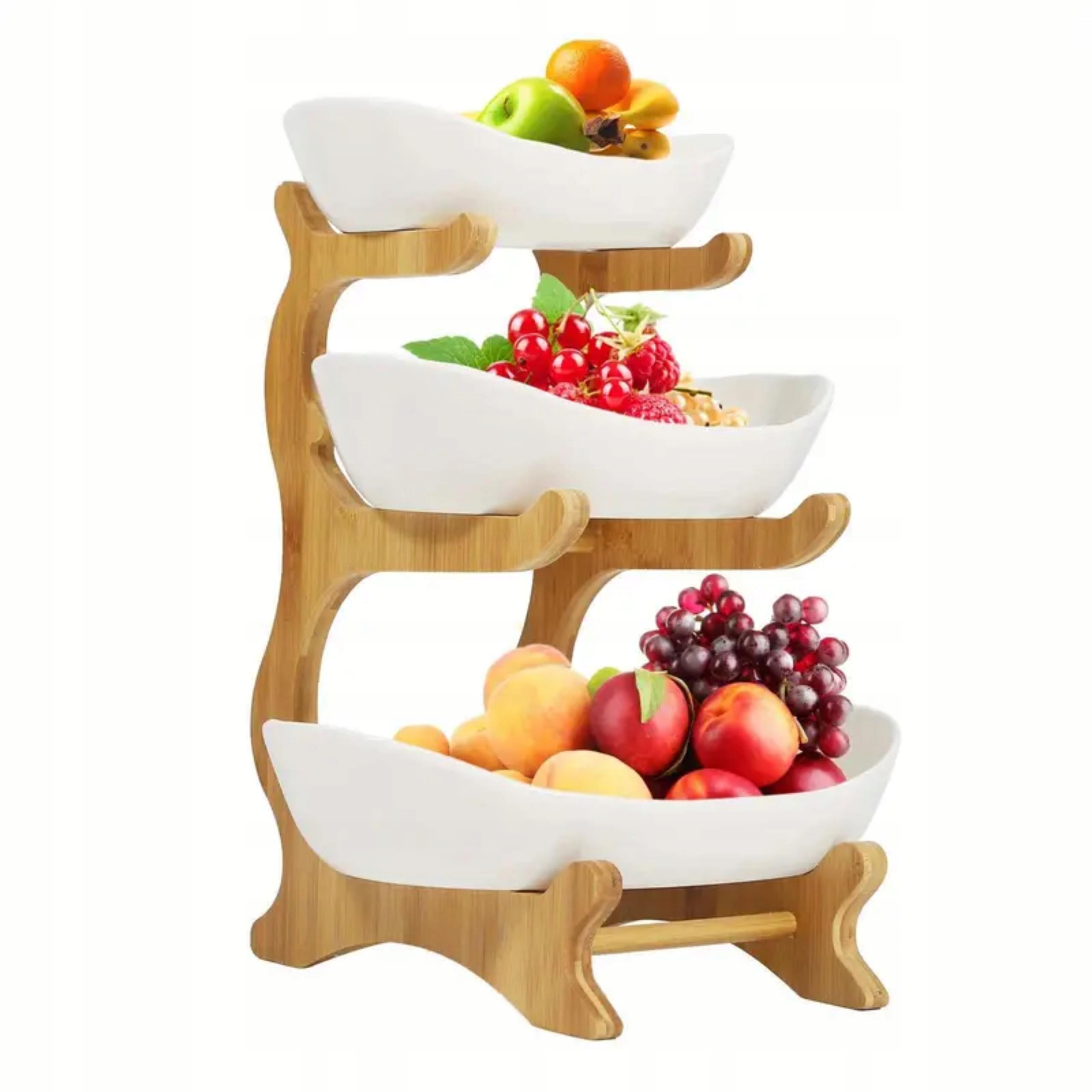 Kosz na owoce składa się z 3 misek o różnych rozmiarach, które można łączyć lub używać oddzielnie w zależności od potrzeb. Ta funkcjonalność pozwala na elastyczność w użytkowaniu i łatwe przechowywanie, gdy nie jest używana.