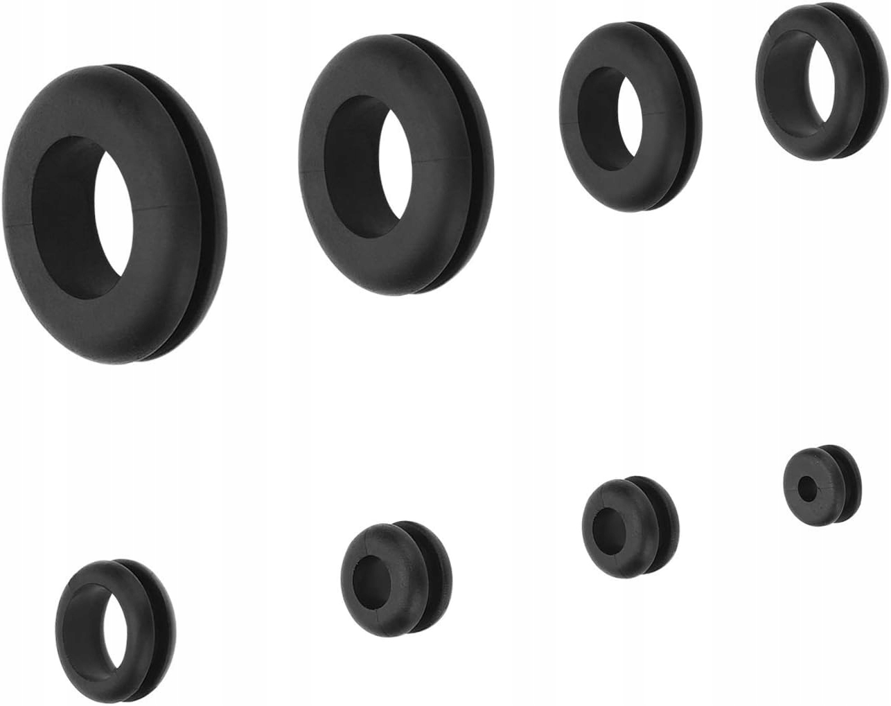 ✅ Przelotki gumowe pakowane są w praktyczne pudełko, ułatwiające organizację według ich rozmiarów.