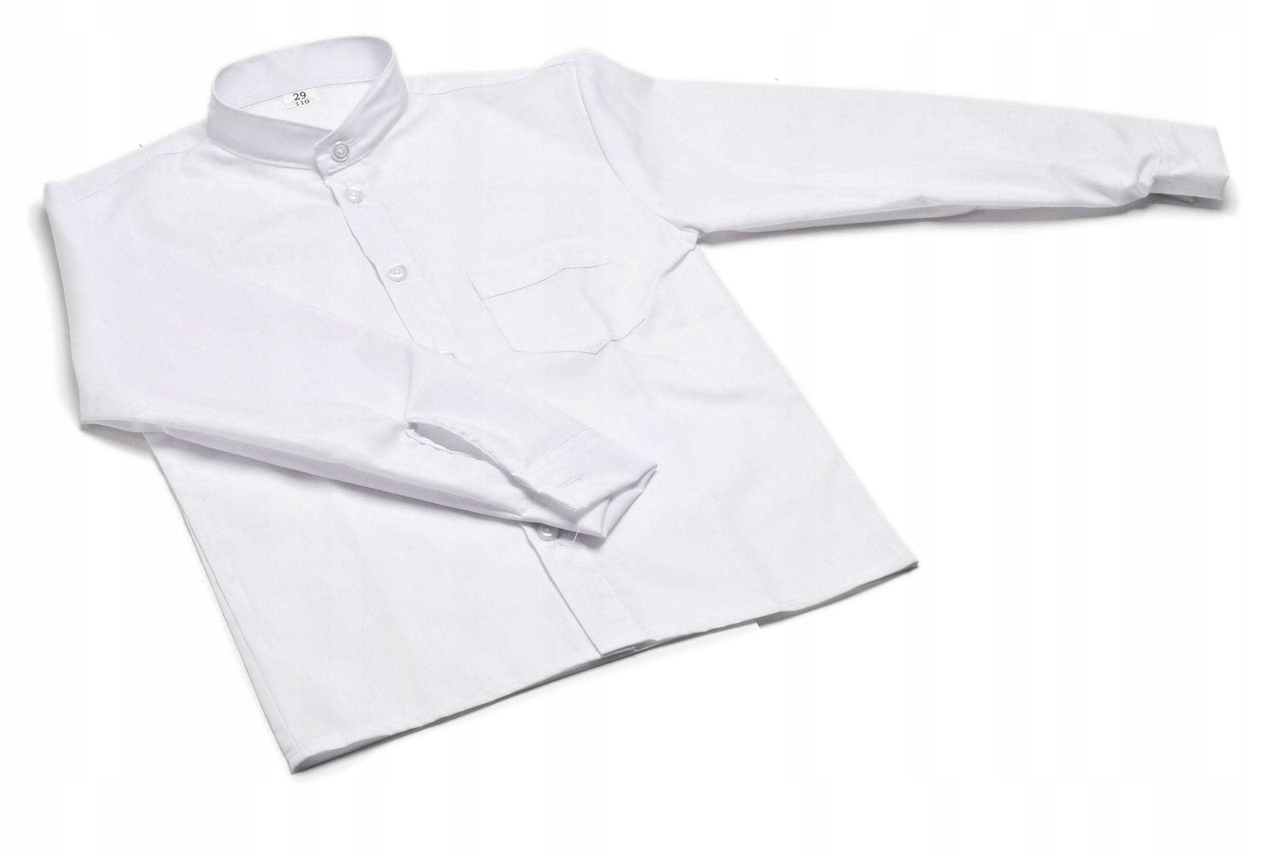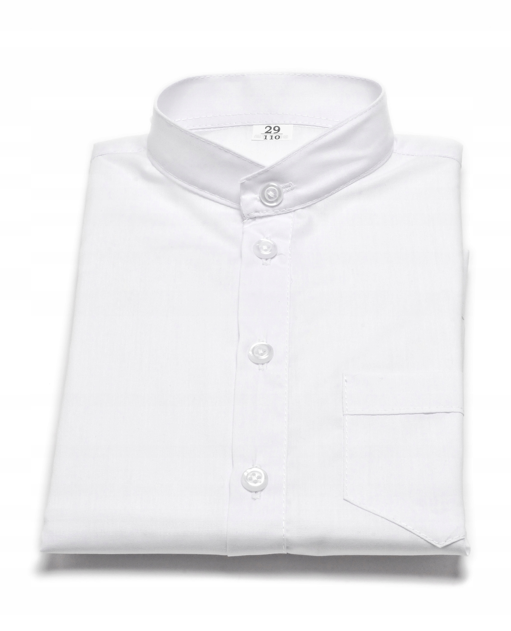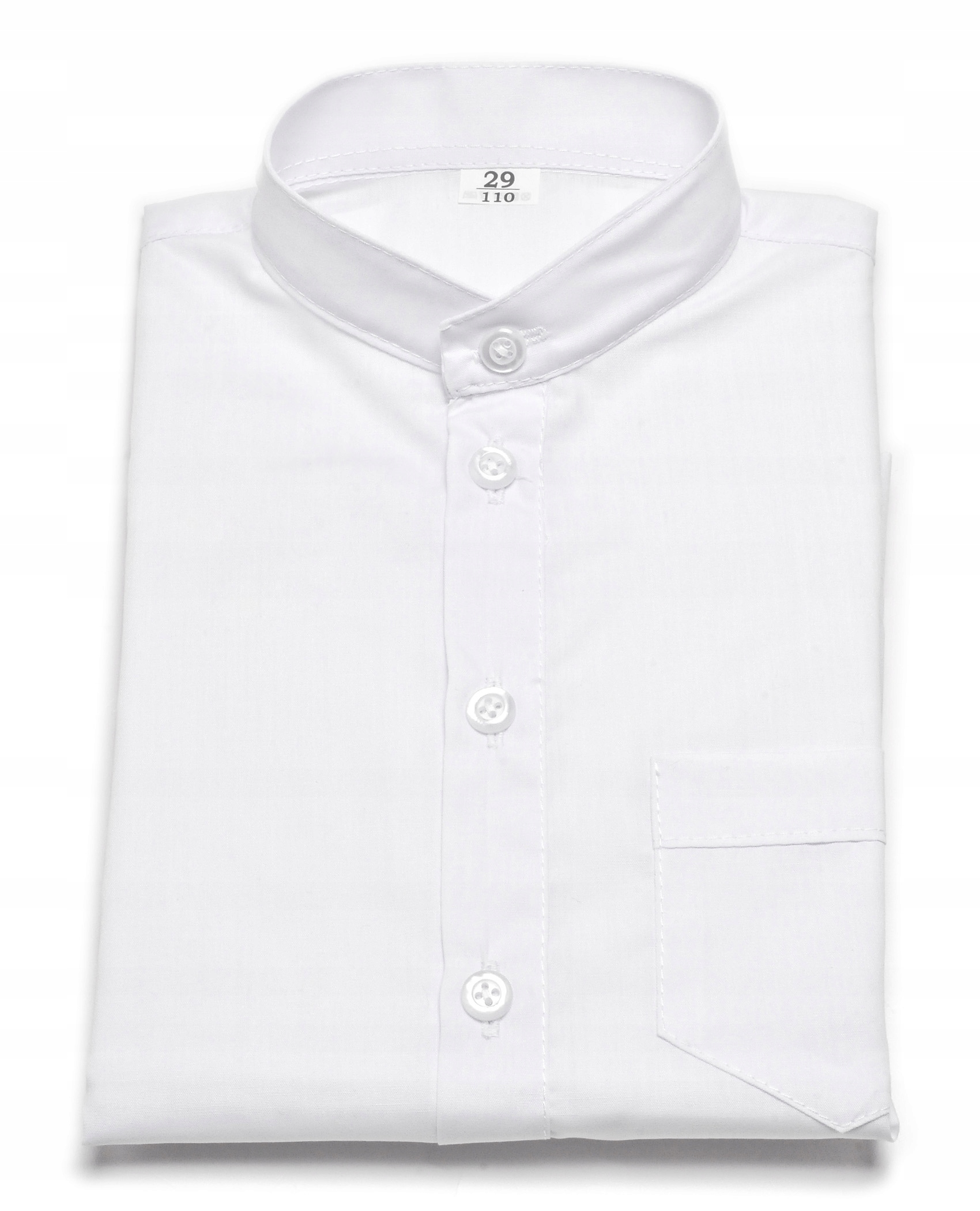Elegancka koszula chłopięca ze stójką i długim rękawem. Posiada kieszonkę z przodu po lewej stronie. Idealnie nadaje się na wszelkiego rodzaju uroczystości szkolne, kościelne czy rodzinne.