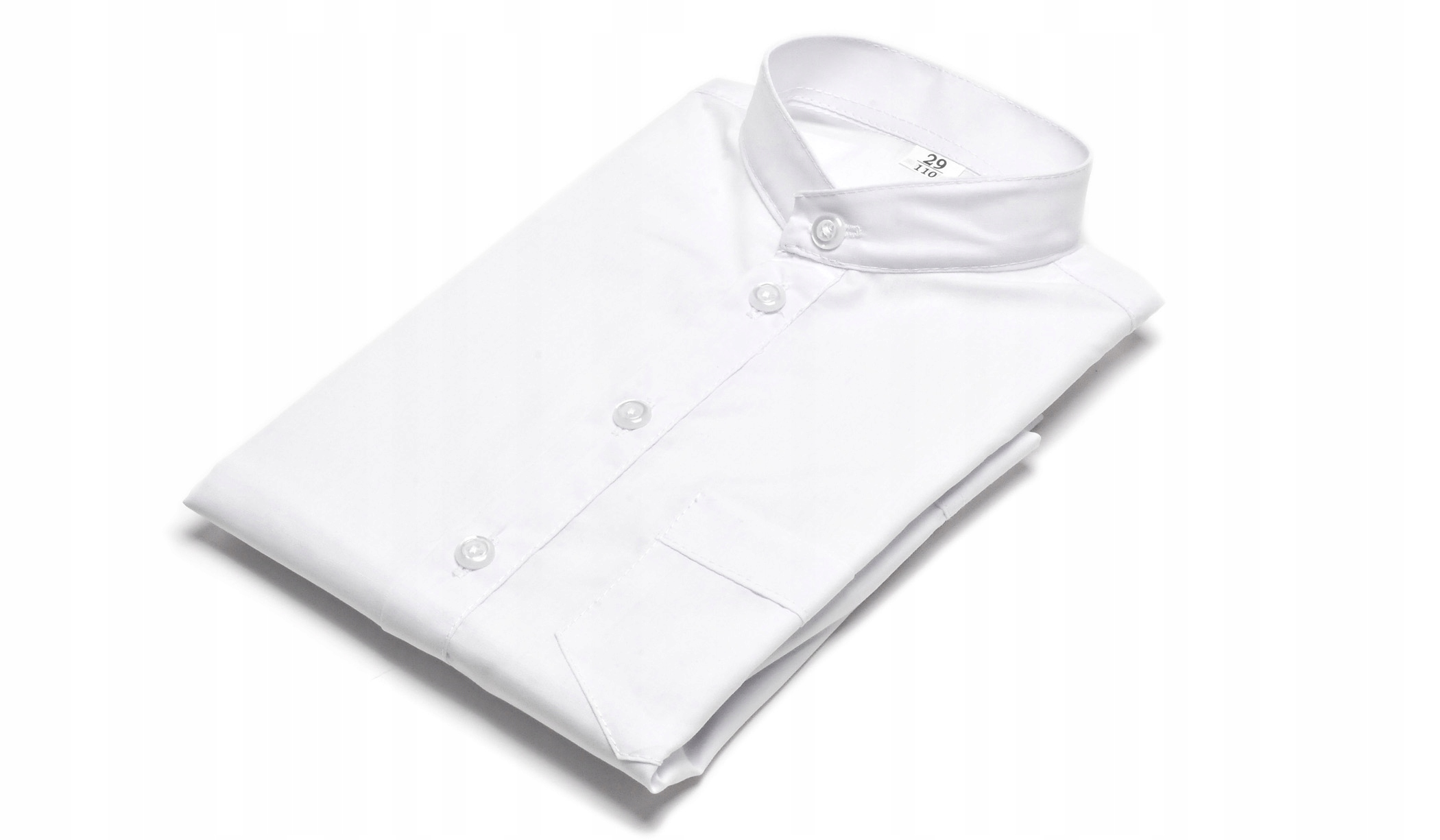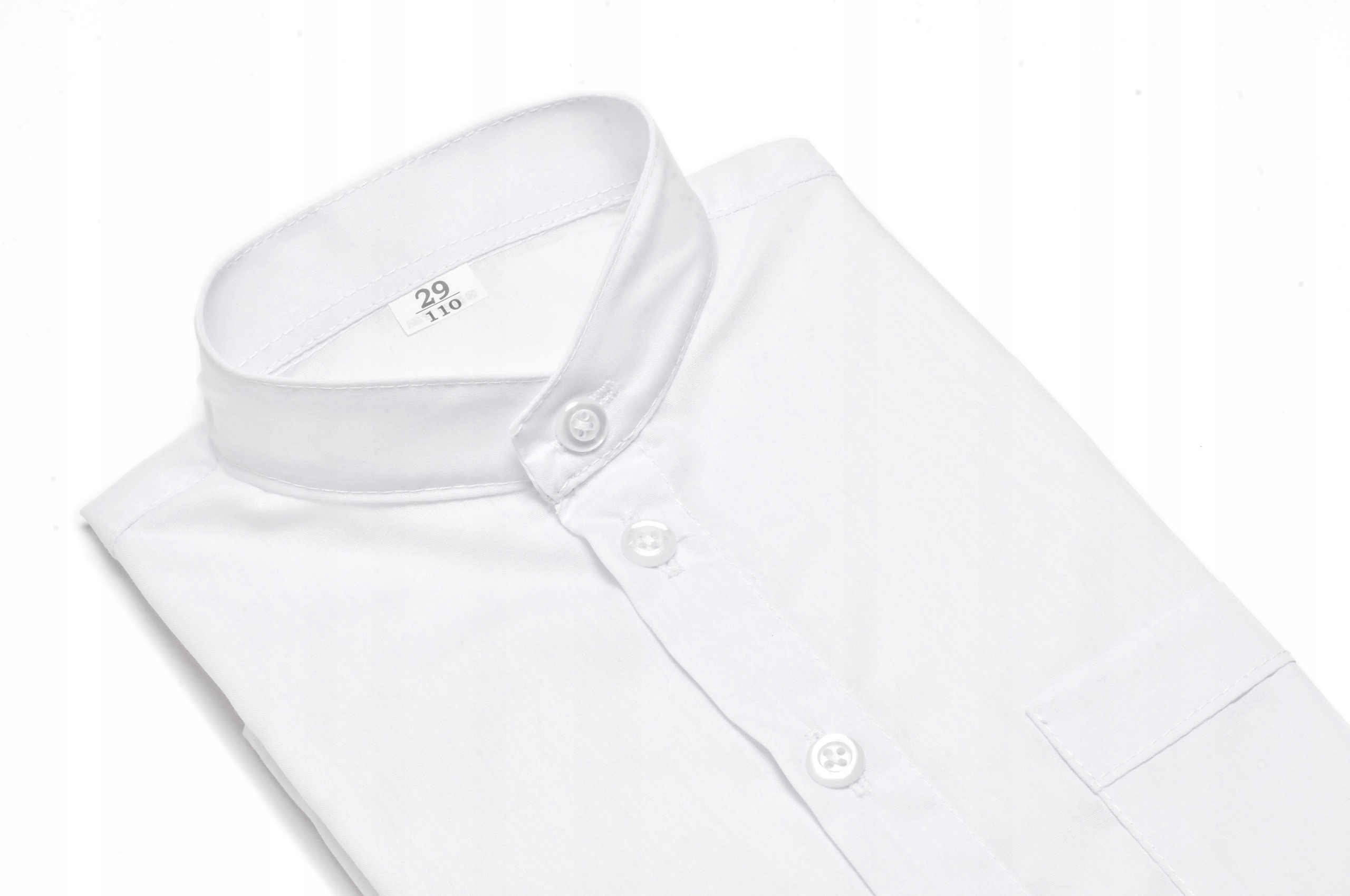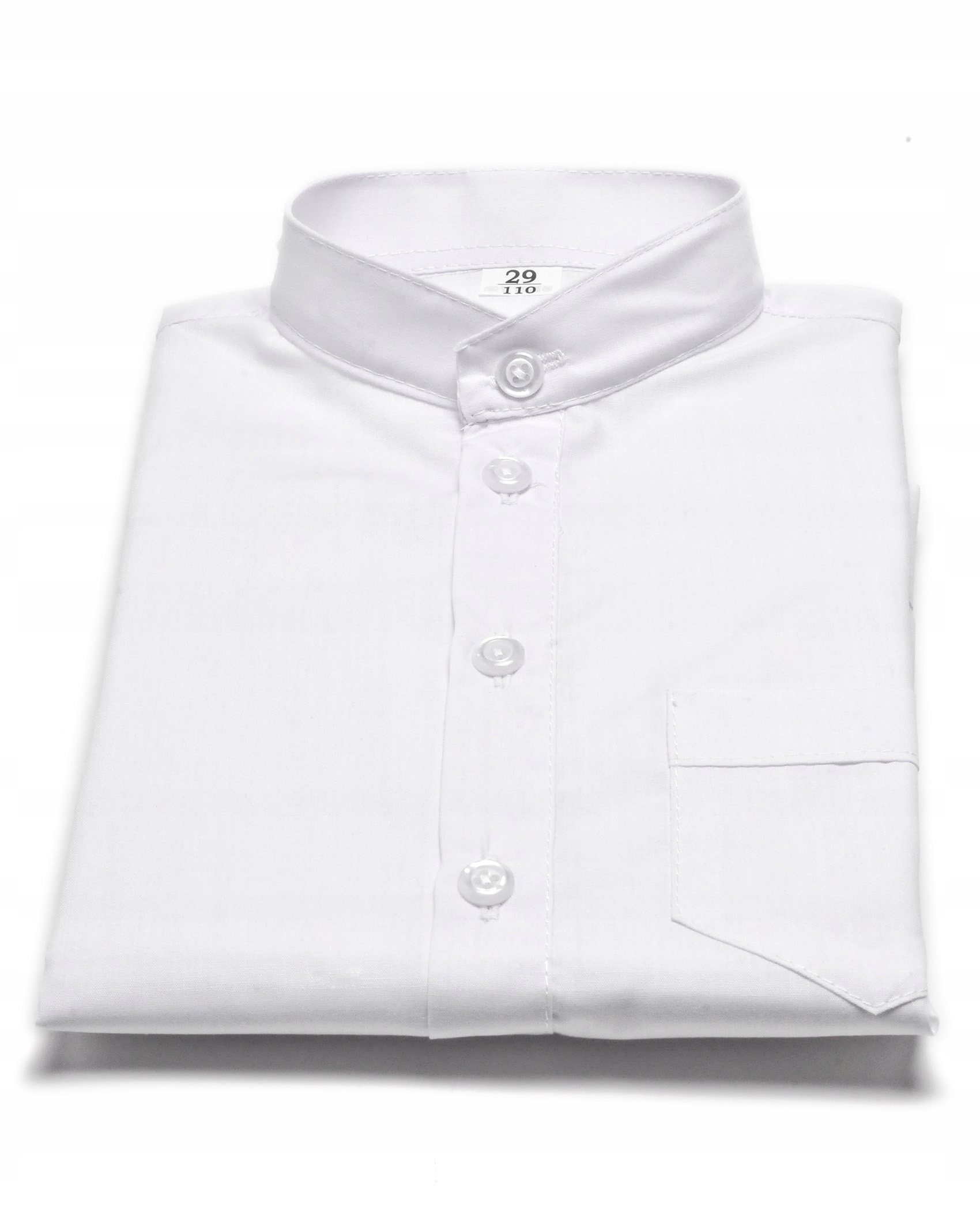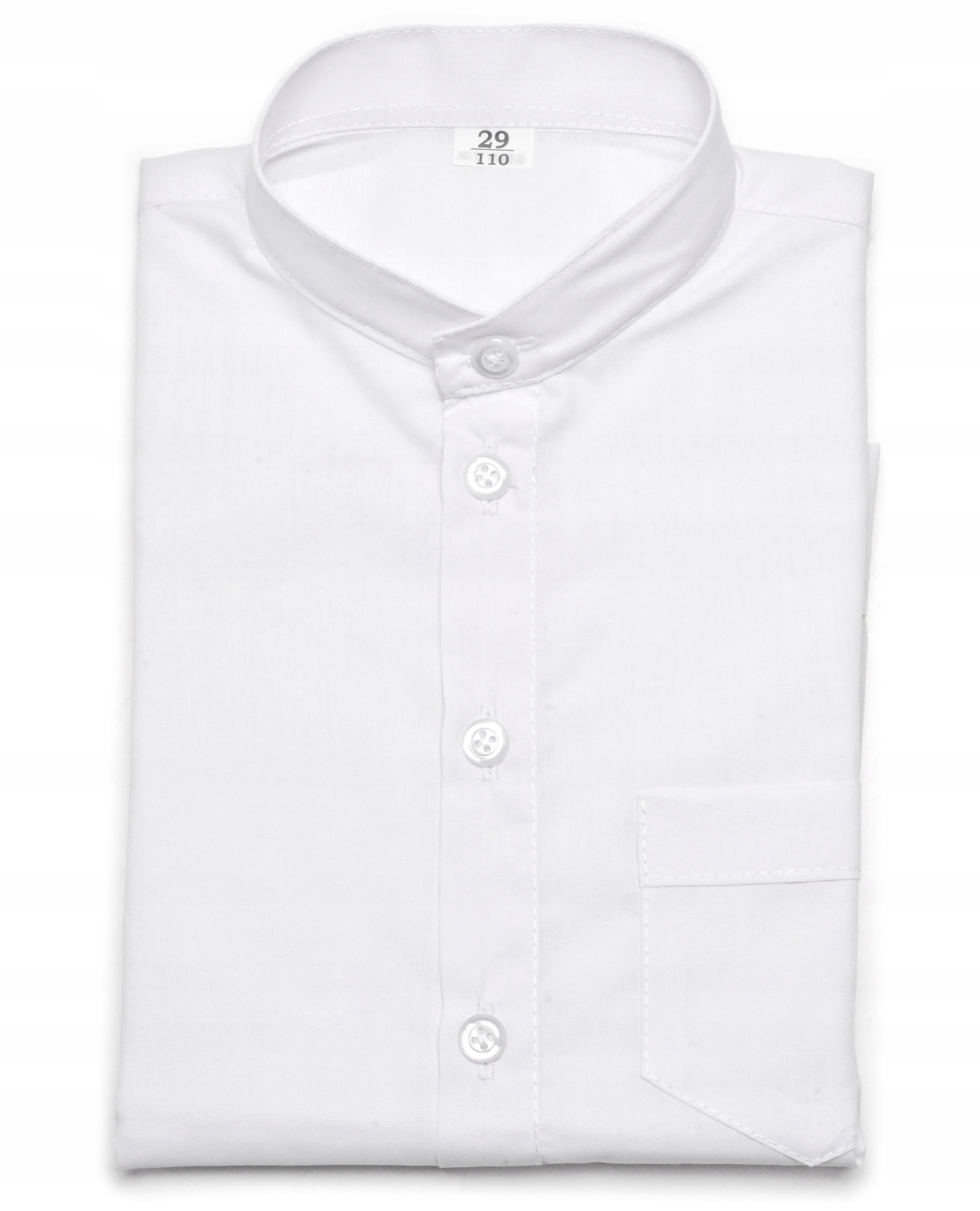 Elegancka koszula chłopięca ze stójką i długim rękawem. Posiada kieszonkę z przodu po lewej stronie. Idealnie nadaje się na wszelkiego rodzaju uroczystości szkolne, kościelne czy rodzinne.