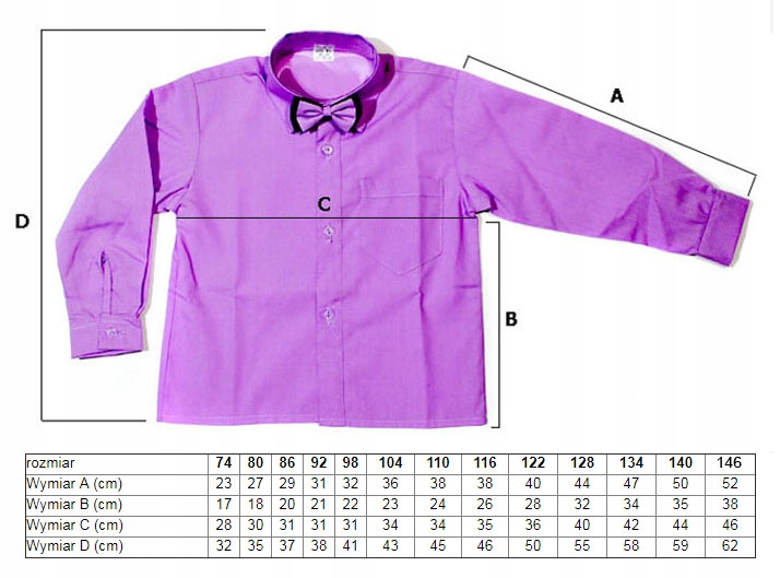 Oferujemy koszule chłopięce w różnych rozmiarach i kolorach.