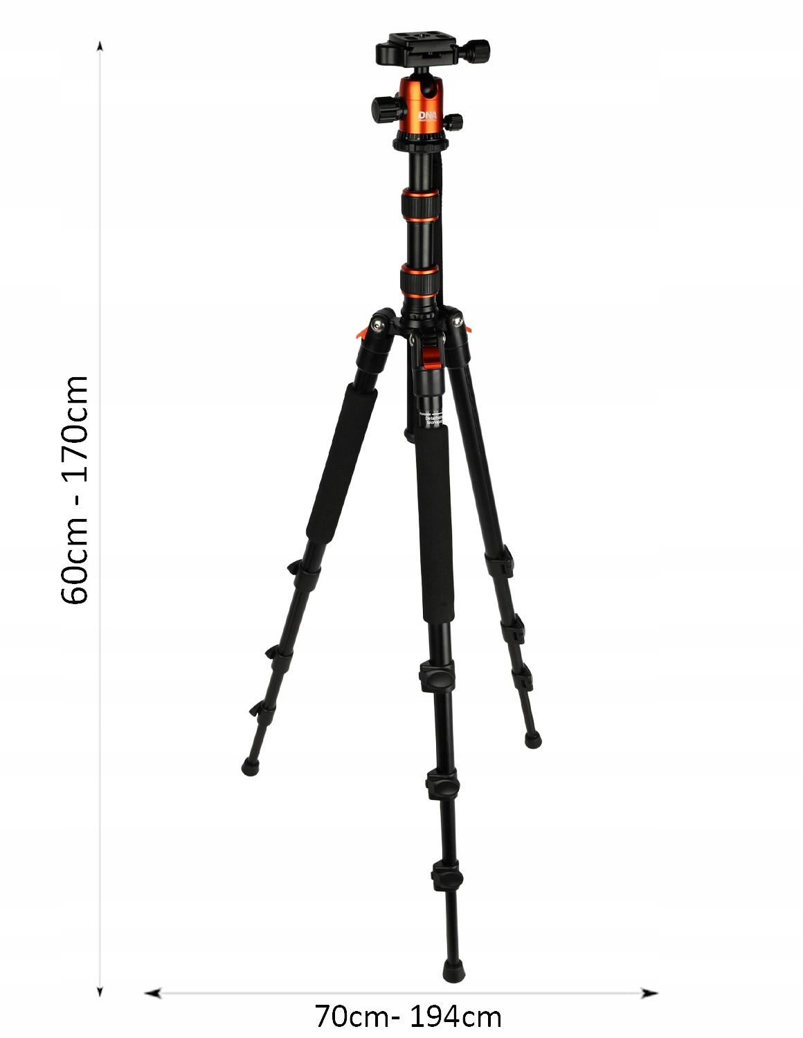 ✅Statyw oferuje szeroki zakres regulacji wysokości (od 60 cm do 170 cm), co pozwala na pracę w różnych warunkach i na różnych wysokościach.