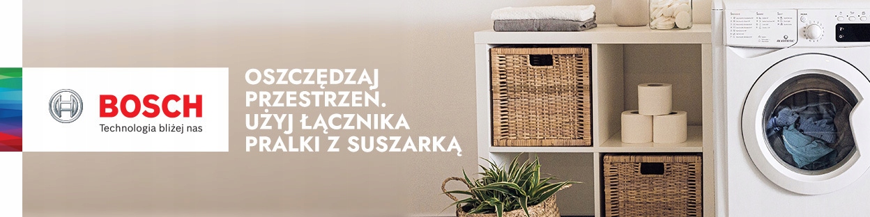 Zagospodarowanie przestrzeni do rozwieszenia prania często bywa wyzwaniem. Niewielka powierzchnia łazienki lub pralni nie ułatwia zadania. Rozwiązaniem może być zakup suszarki elektrycznej oraz ustawienie urządzeń w tzw. słupku. Będzie to możliwe ze specjalnym łącznikiem do pralki i suszarki. Oferowany tu łącznik Bosch może być używany do sprzętów o szerokości 60 cm.