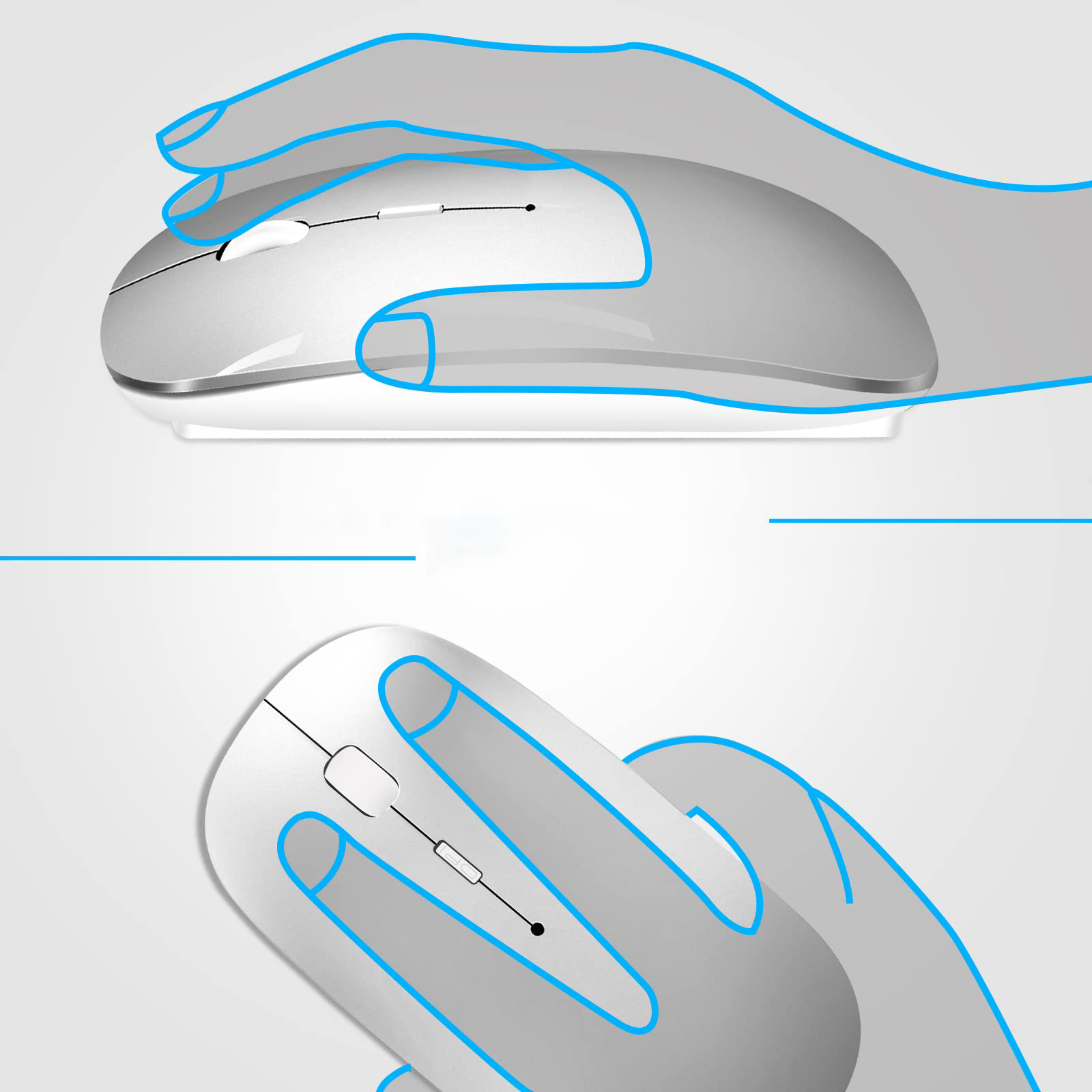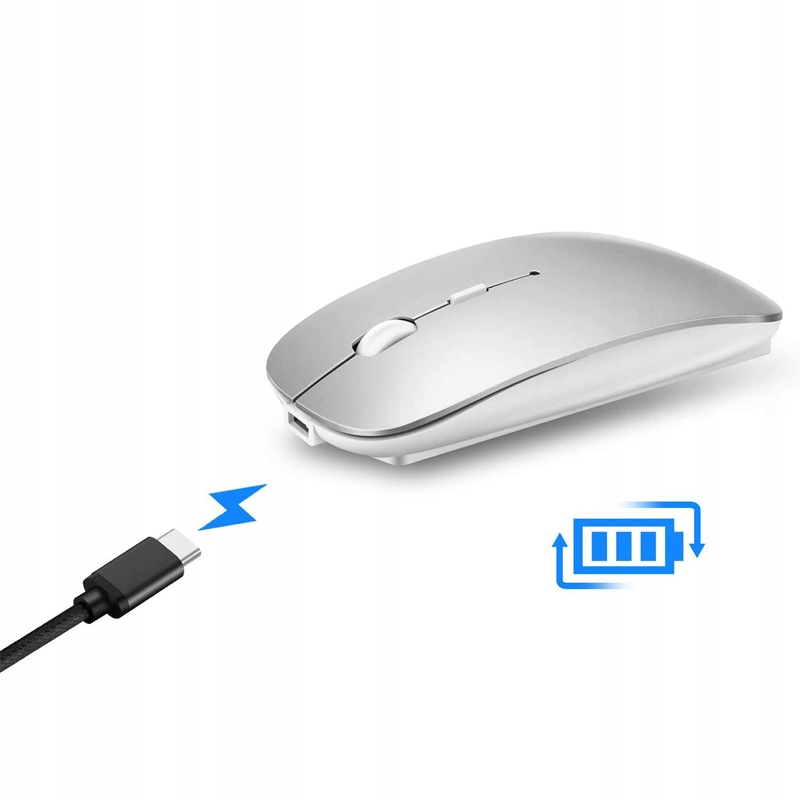 PLUG&PLAY cicha mysz bezprzewodowa 2,4 G, ultra cienka mysz do komputera, 1600 DPI, z nano-odbiornikiem USB, srebrna