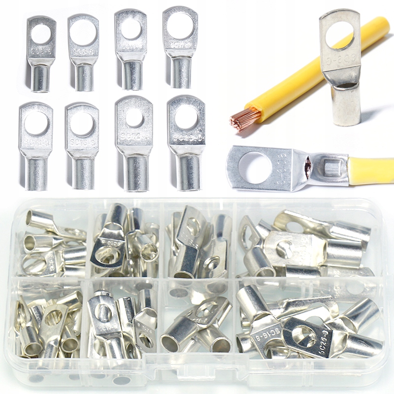 Zestaw 60szt. konektorów oczkowych nieizolowanych - 8 różnych rozmiarów