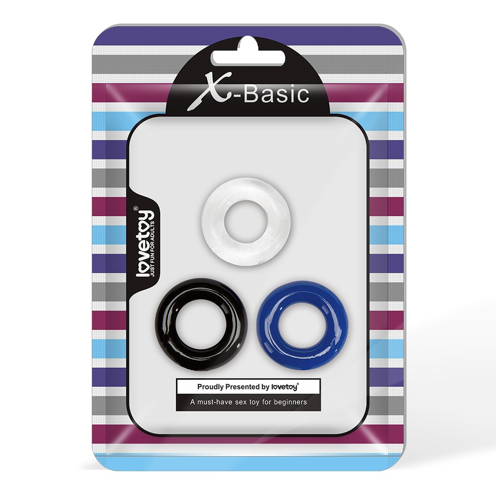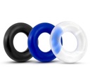 Komplet 3 pierścieni o średnicy 4cm. Kolor: przezroczysty, niebieski, czarny Materiał: TPE