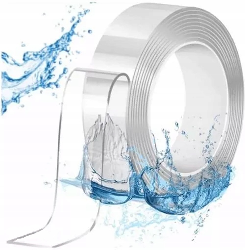 Taśma nano, dzięki wykonaniu z gumy akrylowej i mocnego żelu jest wodoodporna, dlatego możemy ją zdjąć z przyklejonego przedmiotu, przepłukać w wodzie i użyć ponownie. Ta dwustronna taśma, dzięki swojej odporności na wodę może być przyklejona również na mokrej ścianie w łazience, a także w kuchni.