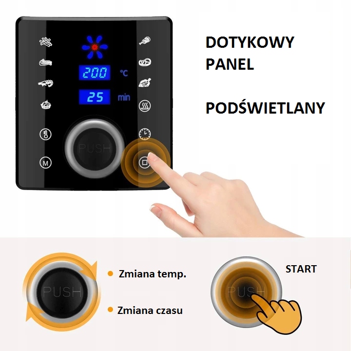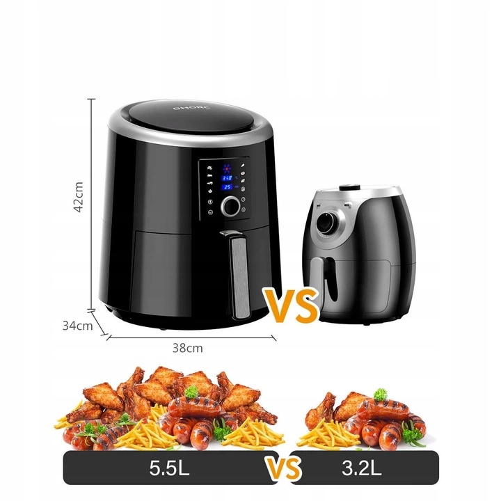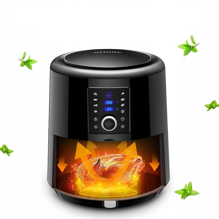 Wielofunkcyjna frytkownica to połączenie smażenia, pieczenia, gotowania na parze, grillowania i rozmrażania. Frytownica ma 7 gotowych ustawień: frytki, żeberka, krewetki, ciasto, kurczak, ryby i stek.