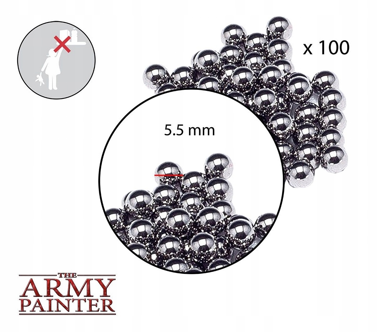 Stalowe kulki o średnicy 5,5mm stworzone by ułatwić rozmieszanie farby w słoiczku. W opakowaniu znajduje się sto kulek.