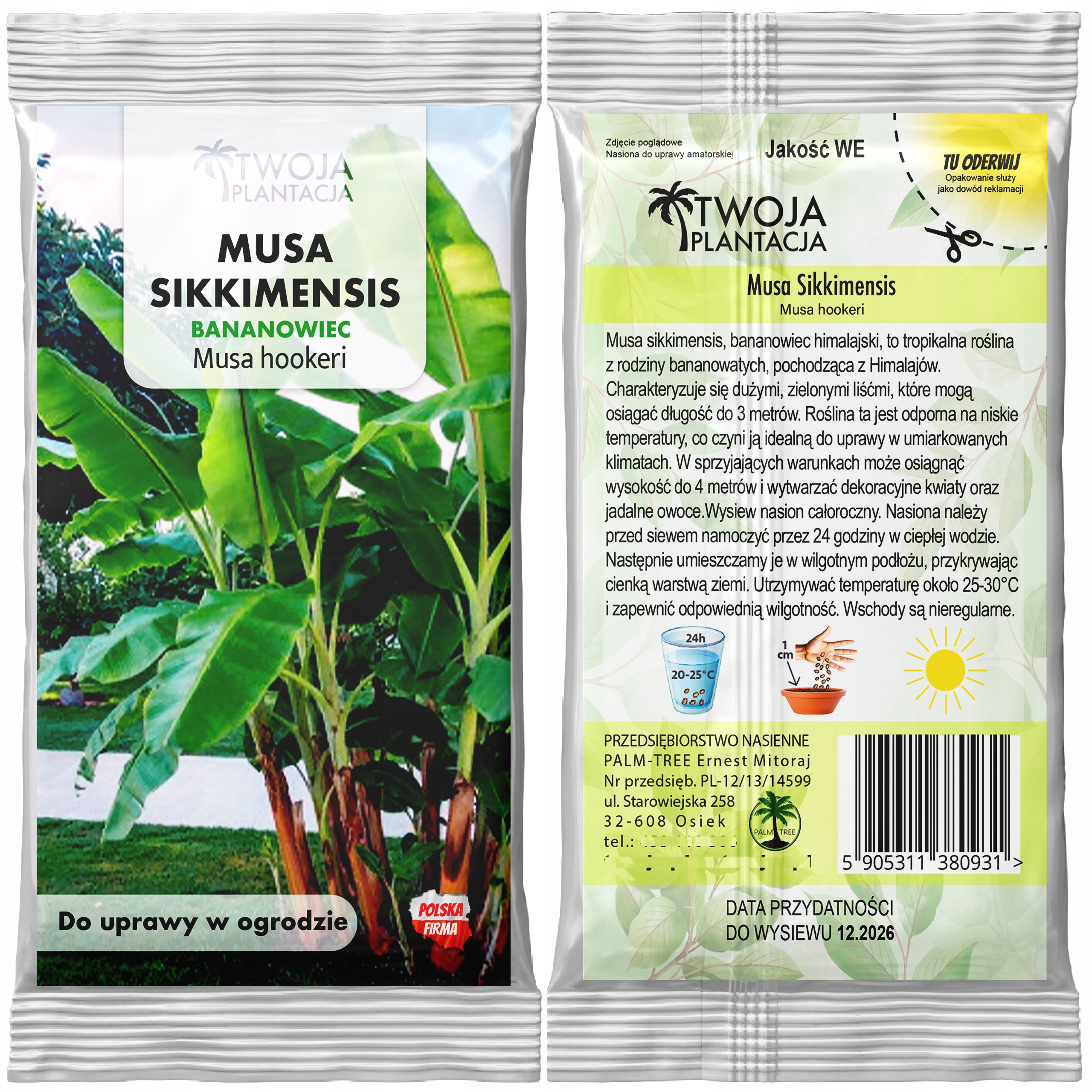 ➡️ Musa sikkimensis - Wysiew nasion całoroczny. Nasiona należy przed siewem namoczyć przez 24 godziny w ciepłej wodzie. Następnie umieszczamy je w wilgotnym podłożu, przykrywając cienką warstwą ziemi. Utrzymywać temperaturę około 25-30°C i zapewnić odpowiednią wilgotność. Wschody są nieregularne.