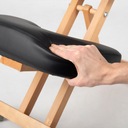 Klękosiad Ergo Simple to ergonomiczne krzesło profilaktyczno-rehabilitacyjne, które umożliwia przybranie zdrowej postawy ciała podczas siedzenia, wyposażone w ergonomiczne i komfortowe siedzisko, regulację wysokości, system jezdny z blokadą oraz ramę z naturalnego drewna bukowego, która nadaje całości wyjątkowej estetyki.