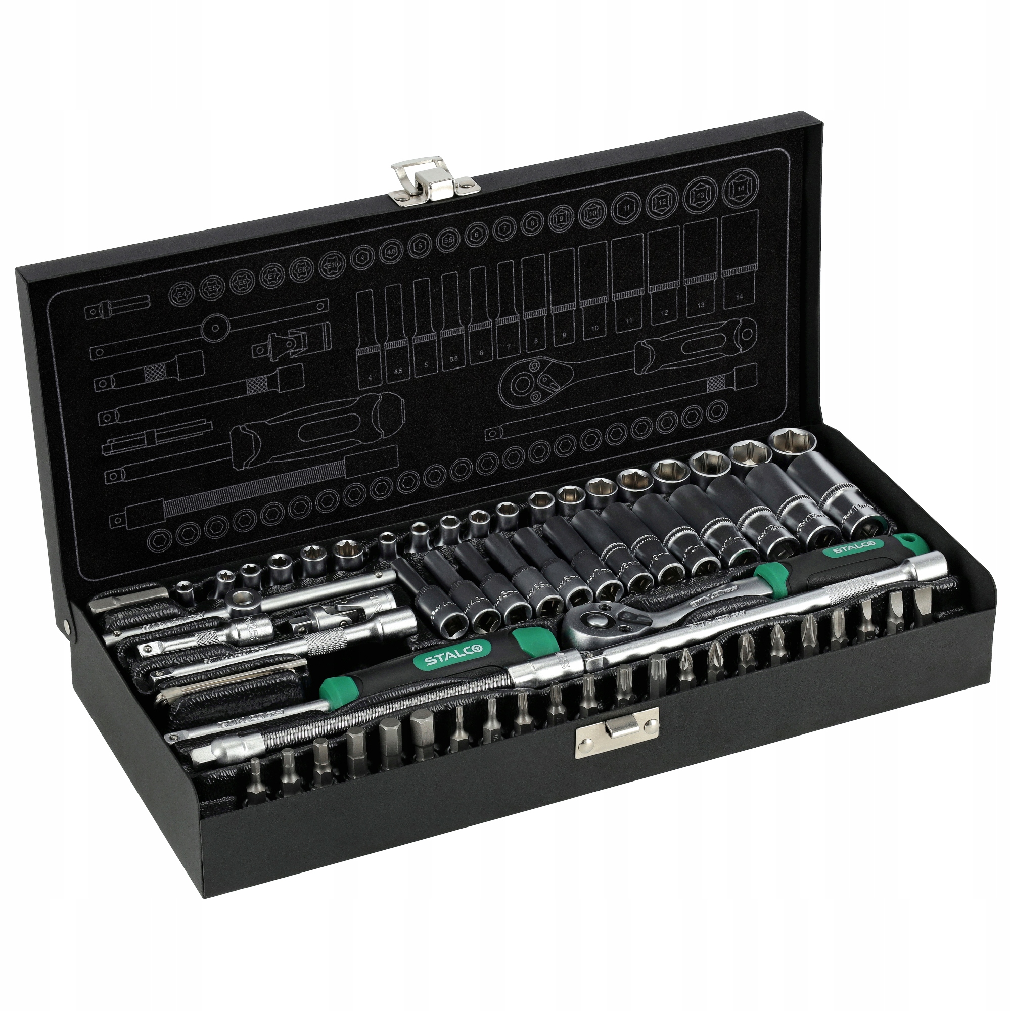 Profesjonalny zestaw kluczy nasadowych marki STALCO to idealne rozwiązanie dla majsterkowiczów i profesjonalistów. Wykonany z wysokogatunkowej stali chromowo-wanadowej, gwarantuje trwałość, precyzję i niezawodność w codziennych pracach warsztatowych. Metalowe pudełko zapewnia wygodę przechowywania i transportu, a grzechotka z 90 zębami umożliwia pracę nawet w trudno dostępnych miejscach.