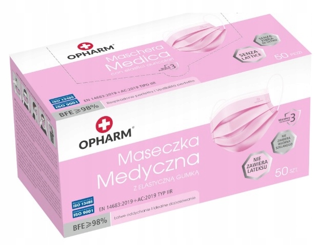 ⭐POLSKIE Profesjonalne Maseczki Chirurgiczne OPHARM – różowy kolor i Medyczna Ochrona