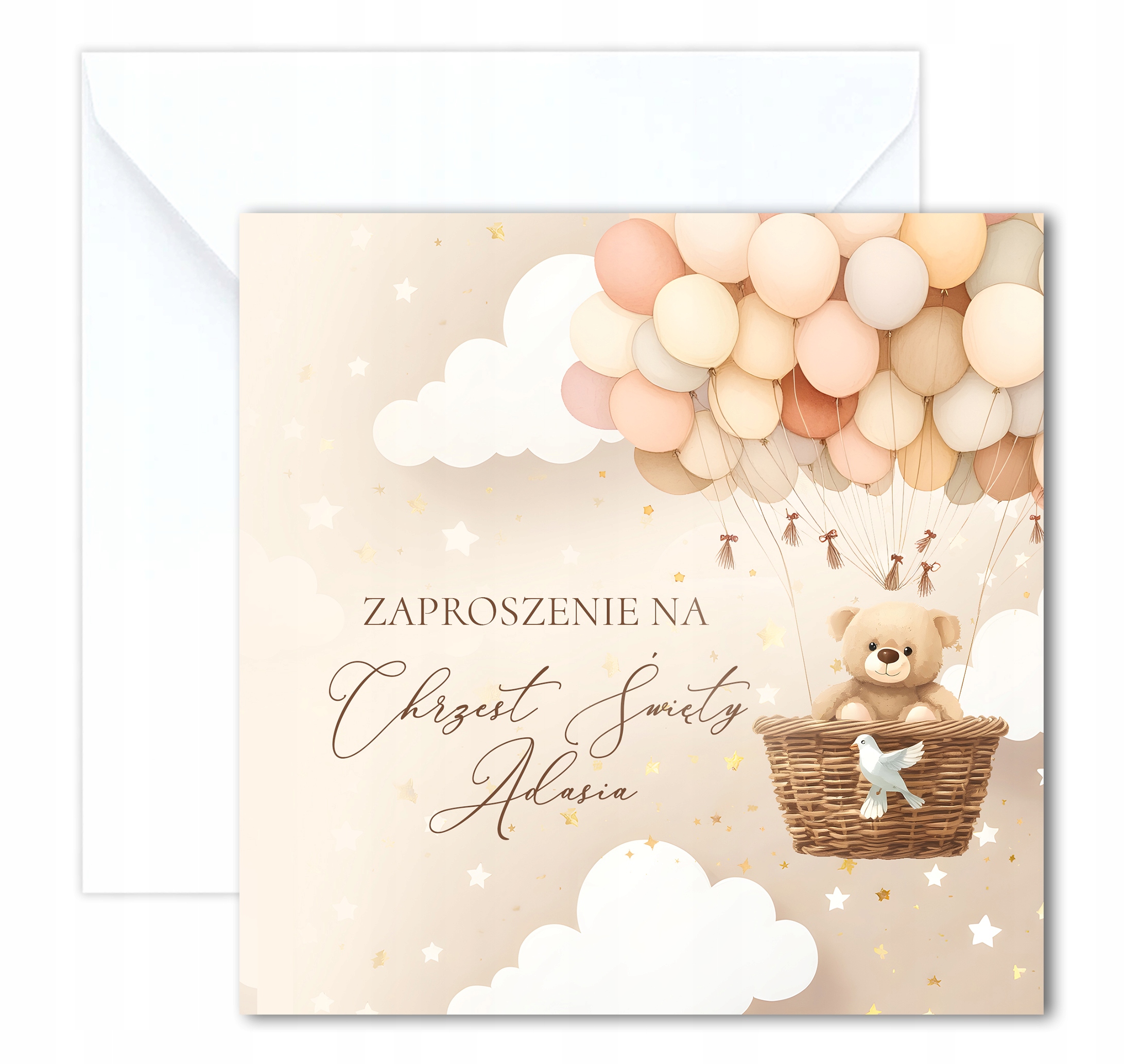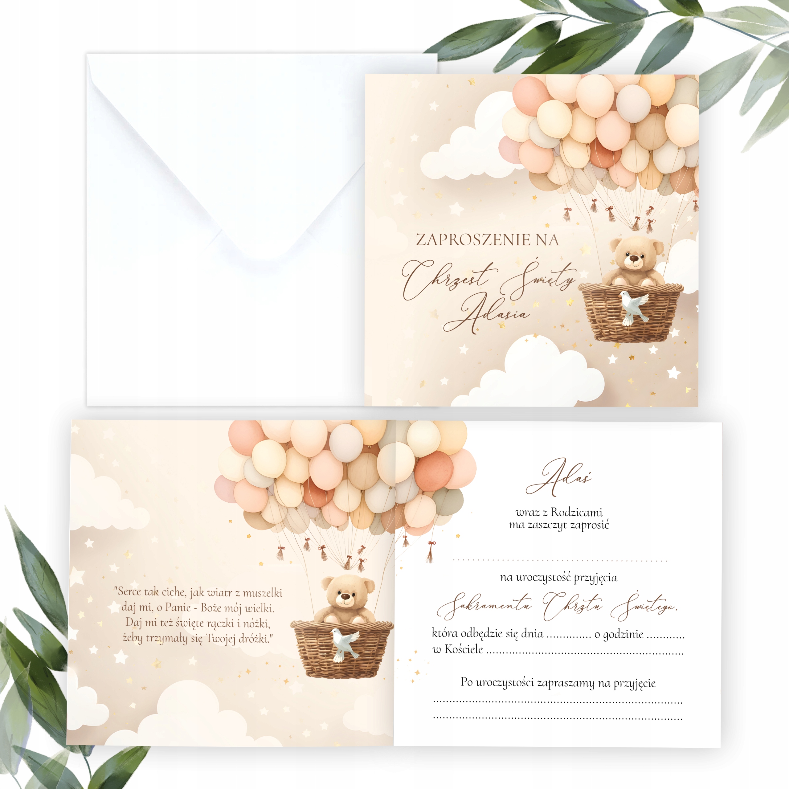 Zaproszenia na Chrzest Święty ze wzorem Miś Balou Beżowy - personalizowane imieniem Twojego dziecka!