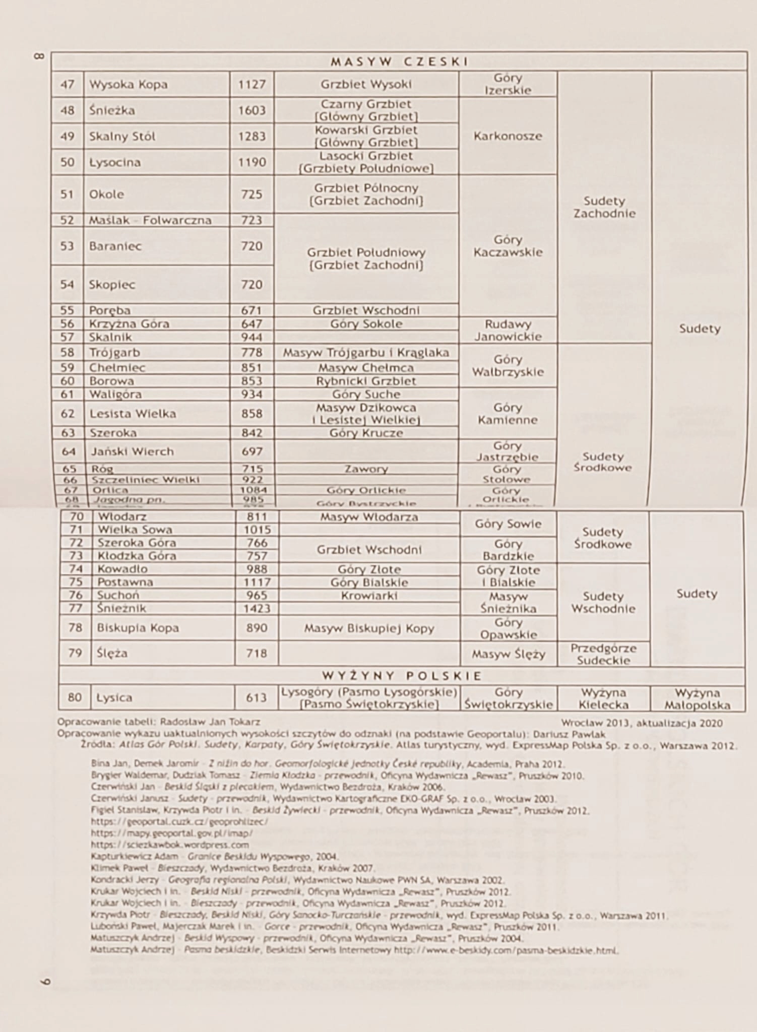 ✔️wykaz szczytów do odznaki,