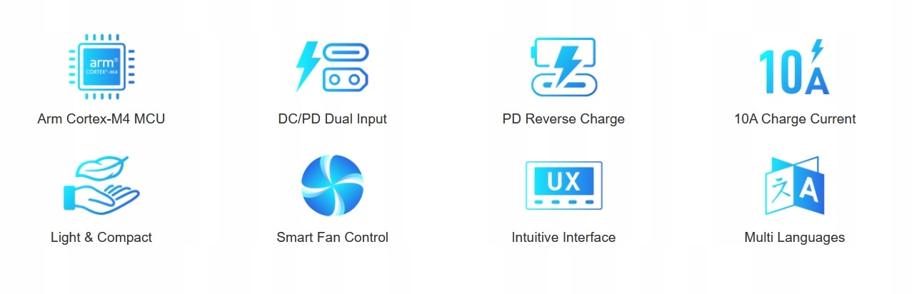 Poznaj nowy interfejs ColorX wprowadzony przez B6neo, oparty na prostych i teksturowanych wizualizacjach! Jasnoniebieski i zielony schemat kolorów stworzony specjalnie do ładowania RC. Pomaga skupić się na ustawieniach. Responsywne menu Web 2.0 i dobrze zaprojektowane ikony sprawiają, że korzystanie z niego jest bardziej odpowiednie dla tych, którzy są przyzwyczajeni do korzystania ze smartfonów! Czas pożegnać się z nudną typografią i przywitać się z pięknym i odważnym nowym interfejsem użytkownika. Życie nie musi być nudne i ładowanie też nie!