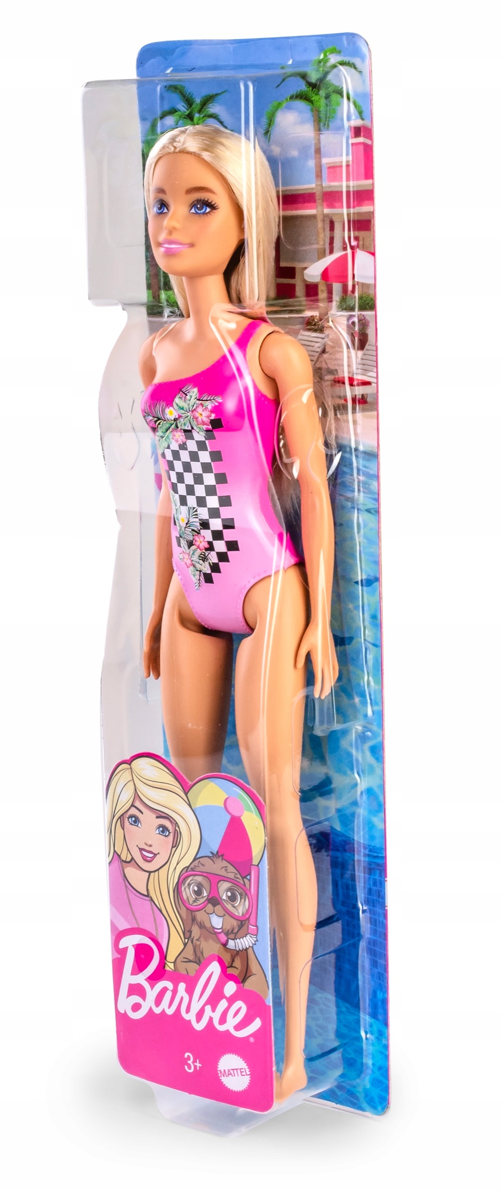 Lalka Barbie Plażowa w różowym kostiumie kąpielowym – Idealna do Wakacyjnej Zabawy!