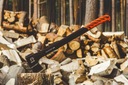 Głowica powlekana TEFLONEM zmniejsza tarcie o 20%, chroni ostrze przed korozją. Unikatowo wyprofilowana głowica w połączeniu z autorskim kątem ostrzenia zapobiega klinowania się siekierki w drewnie - przy zbyt lekkim uderzeniu lub gdy uderzymy pod nieodpowiednim kątem siekierka samoczynnie wycofuje się z pniaczka, Ostrze ma specyficzny, szybko rozszerzający się kształt, który wyglądem przypomina klin