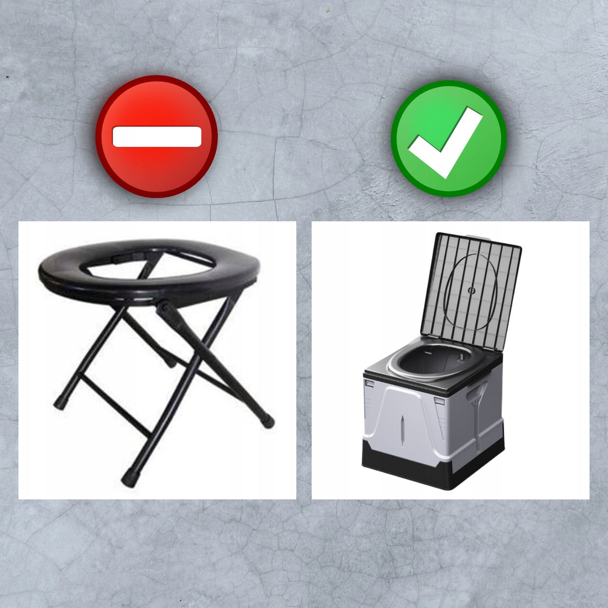 ✔️ Łatwy montaż: tę mobilną toaletę można rozłożyć w kilka minut, wystarczy otworzyć i zapiąć ściany boczne, nałożyć worek, zamknąć pokrywę.