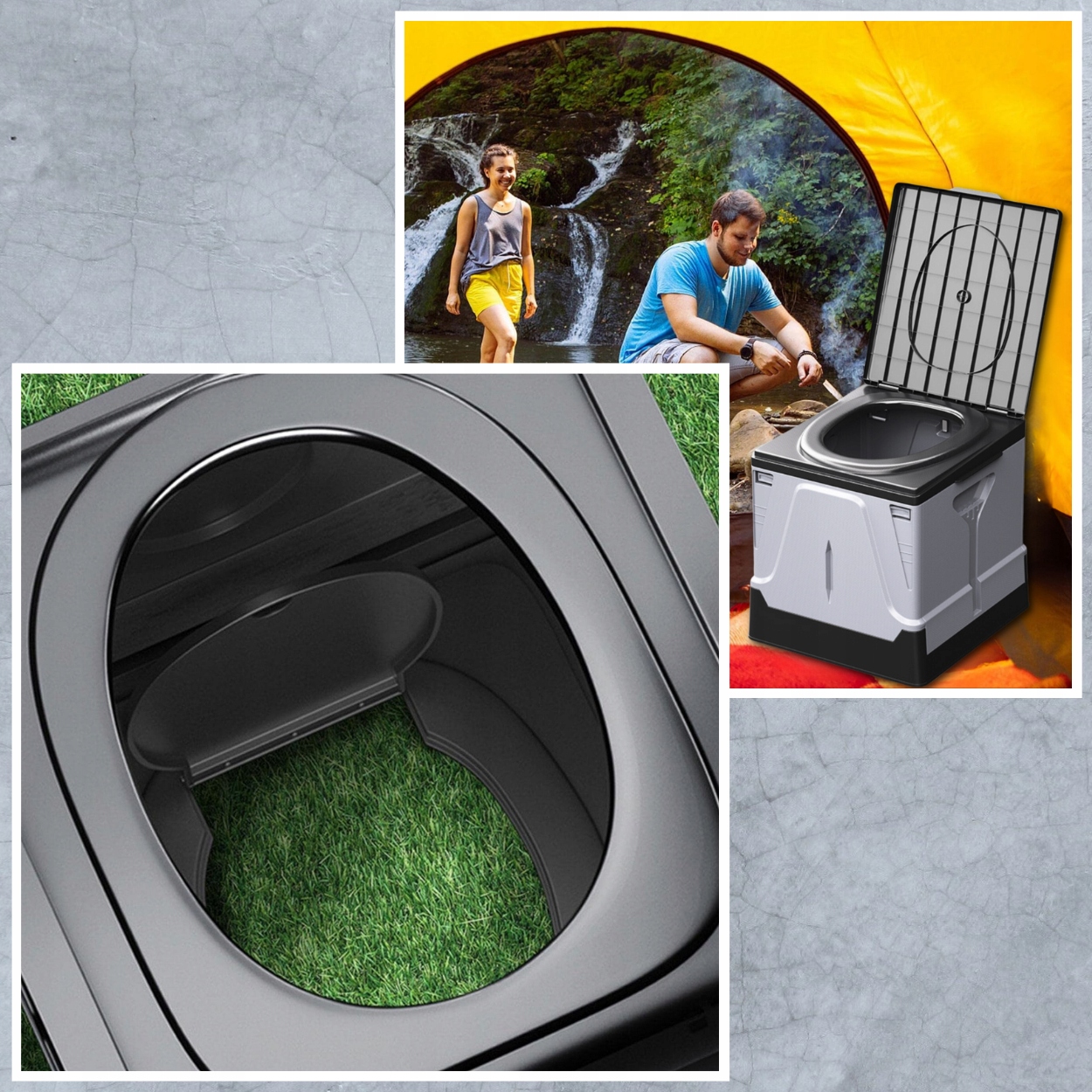 ✔️ Stabilna i trwała: przenośna toaleta kempingowa jest wykonana z przyjaznego dla środowiska tworzywa sztucznego ABS, które jest wodoodporne, bezzapachowe i odporne na upadki. Ergonomiczna konstrukcja o owalnym kształcie sprawia, że czujesz się komfortowo i wygodnie, jakbyś siedział w toalecie w domu. 4 innowacyjne klamry bezpieczeństwa sprawiają, że toaleta jest wyjątkowo stabilna i trwała.