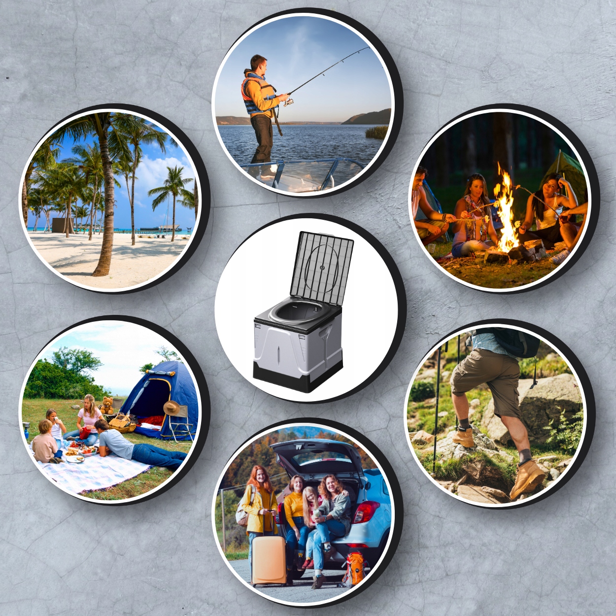 ✔️ Wielofunkcyjna: składana toaleta jest funkcjonalna i ma pokrywę, dzięki której można używać tego przedmiotu na kilka sposobów: jako toaleta kempingowa, taboret, pudełko do przechowywania lub kosz na śmieci. Jest to idealna, przenośna toaleta na kemping, wędrówki, podróże, do domu, w korku i w innych sytuacjach awaryjnych, praktyczna dla dorosłych i dzieci.