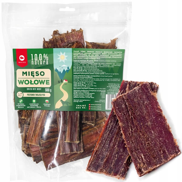 100% naturalne suszone mięso wołowe a dokładnie suszony mięsień przełyku wołowego to bez wątpienia jeden z najbardziej rozchwytywanych smakołyków. Przysmak jest bogaty w białko i nawet najbardziej wybredne psy zachwycą się jego smakiem.