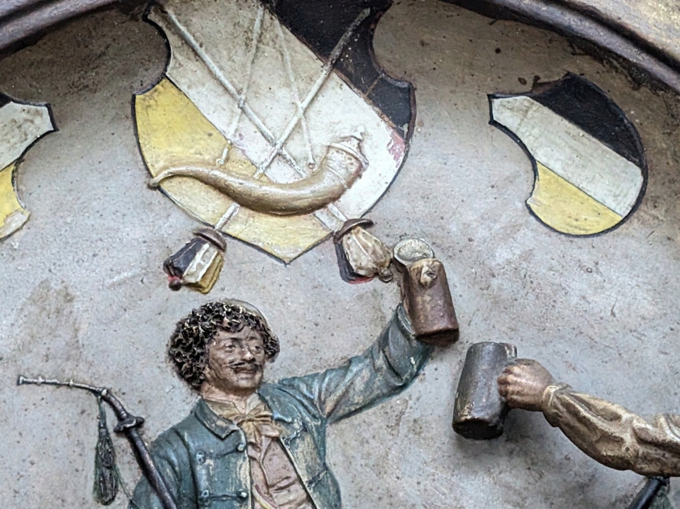 Stan widoczny na zdjęciach. Kilka wykruszeń kartusza, brak stopy jednego z biesiadników