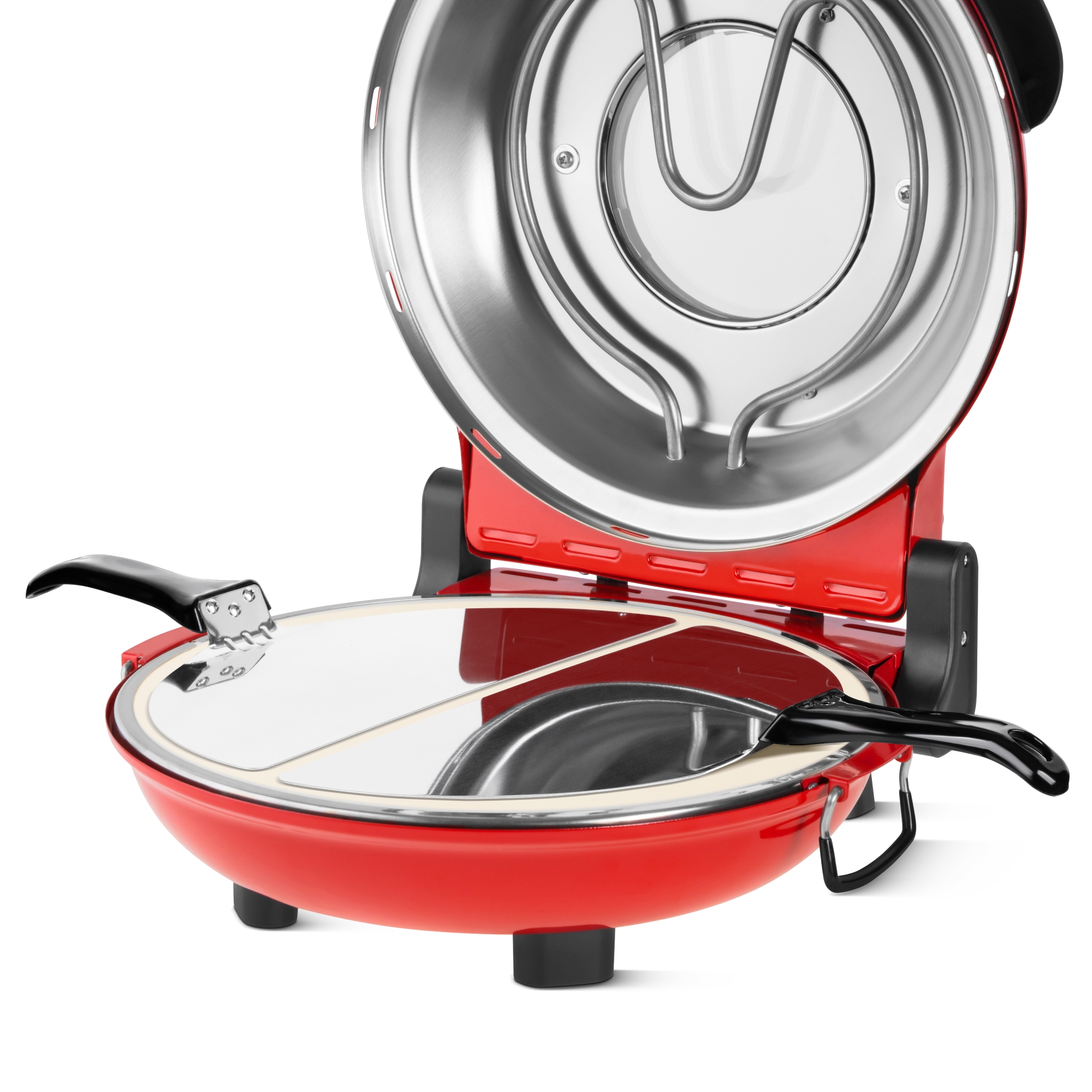 Niezależnie od tego, czy wolisz pizzę na grubym cieście, czy preferujesz wersje na cienkim spodzie, domowy piecyk do pizzy Teesa spełni Twoje wymagania. Pokrętło regulacji temperatury w zakresie od 110°C do 405°C oraz sygnalizacja czasu pracy to połączenie, dzięki któremu nie tylko poczujesz się jak pizzerman, ale uzyskasz prawdziwą włoską pizzę w domowym zaciszu.