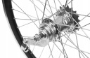 Tylne koło rowerowe w rozmiarze 20”, dedykowane do rowerów dziecięcych. Zbudowane zostało z czarnej stożkowej obręczy, stalowej piasty PARALLAX oraz 26 stalowych szprych o średnicy 2,0mm. Aluminiowa trzykomorowa obręcz koła o wysokości 29mm, posiada wskaźnik zużycia, czyli specjalnie wyfrezowany rowek, który informuje o stopniu zużycia bieżni hamulca, a zarazem o stopniu wyeksploatowania całej obręczy i konieczności jej wymiany. Piasta wyposażona w oś M10 x 180mm oraz mocowanie na śruby. W zestawie znajdują się także nakrętki. Koło rowerowe jest niezwykle wytrzymałe, trwałe i sztywne. Zapewnia bezpieczną i komfortową jazdę najmłodszym rowerzystom oraz prawidłową i płynną pracę całego układu jezdnego ich roweru.