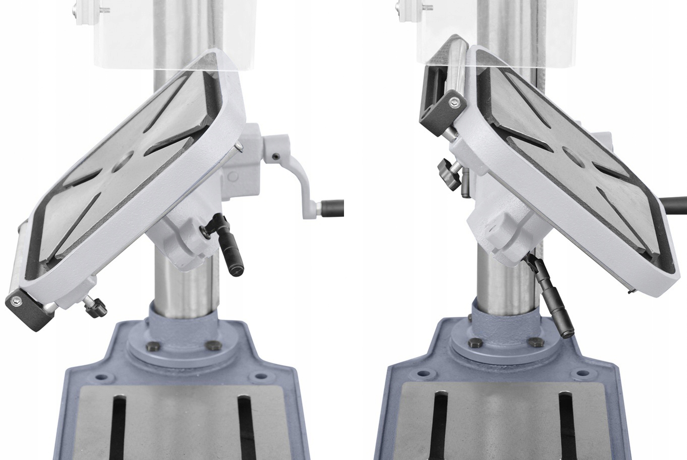 Дрель крепче благодаря конструкции, обеспечивает идеальное качество сверления. Угол наклона стола регулируется, позволяет широкий диапазон обработки. Устройство имеет электронный индикатор оборотов, индикатор глубины сверления, а также освещение рабочего поля.