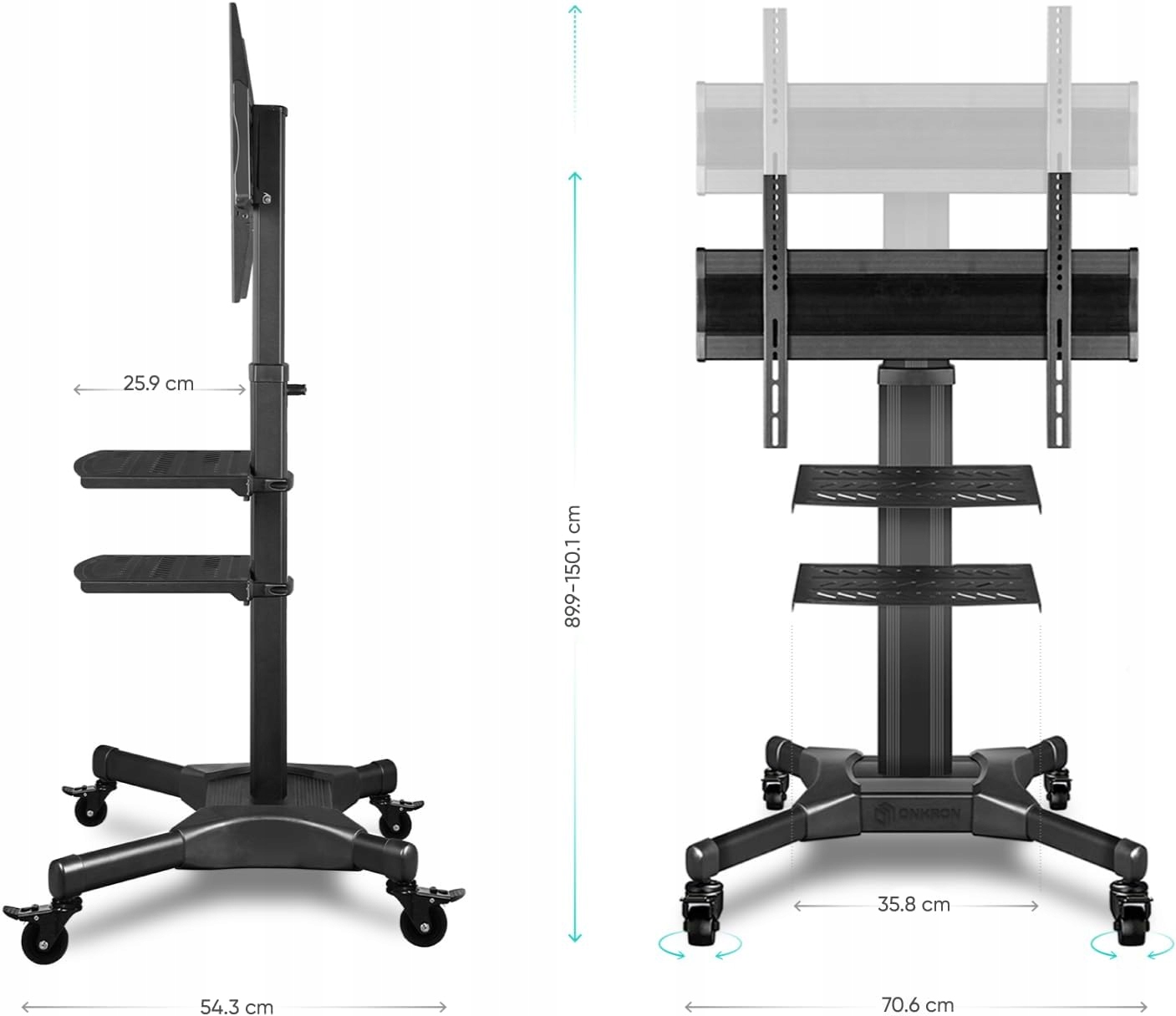 Wykorzystaliśmy w ONKRON najlepsze cechy naszego najpopularniejszego mobilnego stojaka TV i od niedawna wprowadziliśmy model TS2551. Nowa podstawa na czterech kółkach z blokadą jest mniejsza i lżejsza, umożliwiając lepsze manewrowanie i ogólną estetykę. Ten mobilny stojak reprezentuje doskonałą równowagę między formą a funkcjonalnością, jakością i wartością.